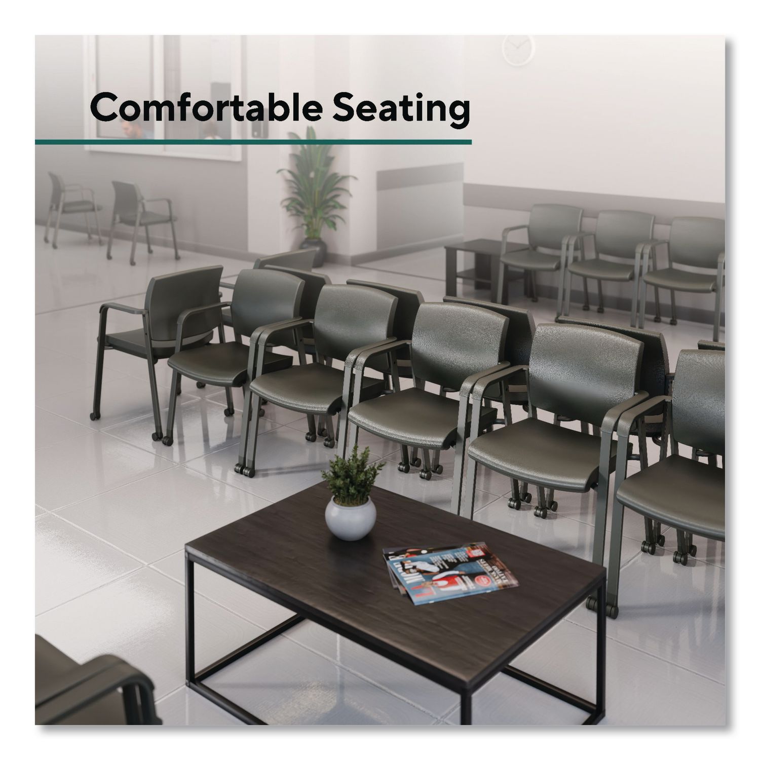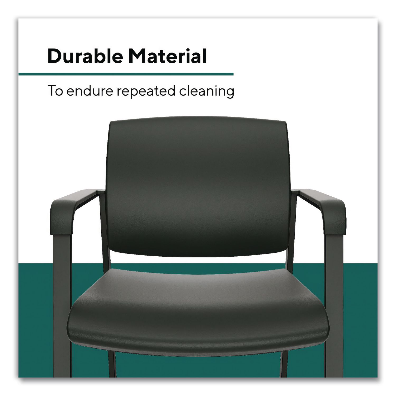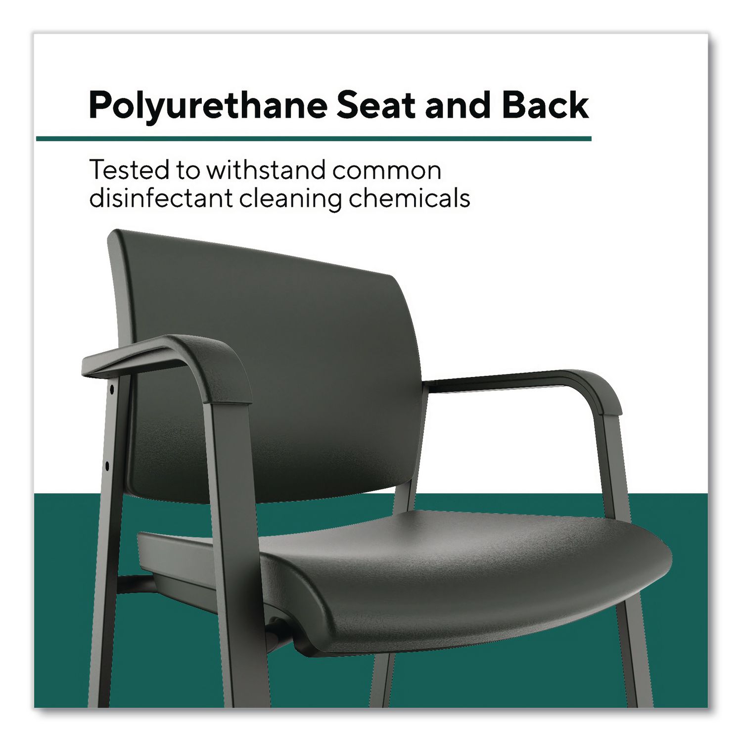 Welcome your guests with comfort and style with the Workplace2.0™ Health™ Esler Guest Chair. Its polyurethane seat and back are easy to clean and tested to withstand common disinfectant cleaning chemicals, ensuring long-lasting quality and hygiene. The chair’s metal frame provides sturdy support, while the contoured padded seat delivers a comfortable experience for guests. It’s easy-to-clean construction makes it an excellent choice for those seeking a low-maintenance seating solution. This chair is both practical and reliable. Recommended Application Area(s): Guest/Reception & Lounge; Seat Color: Black; Back Color: Black; Color Family: Black.