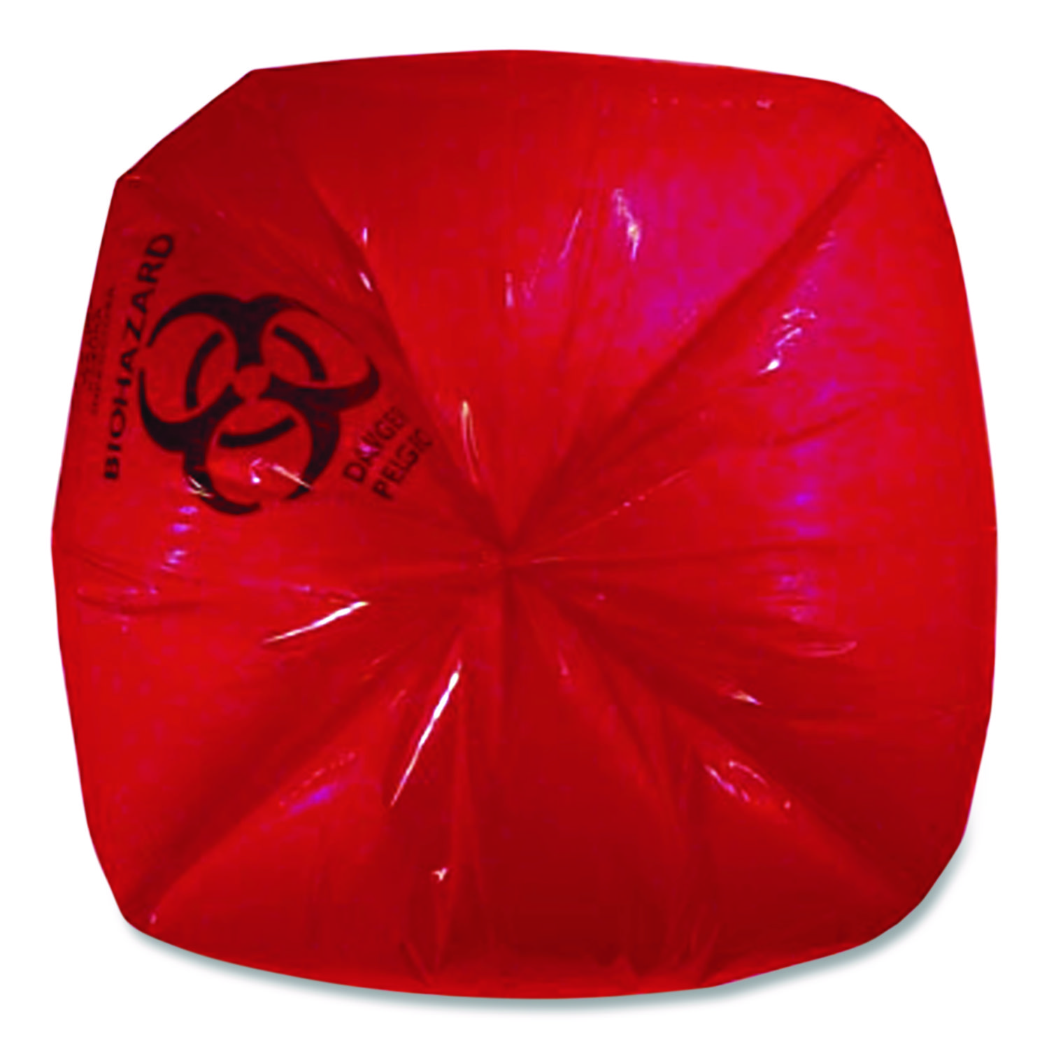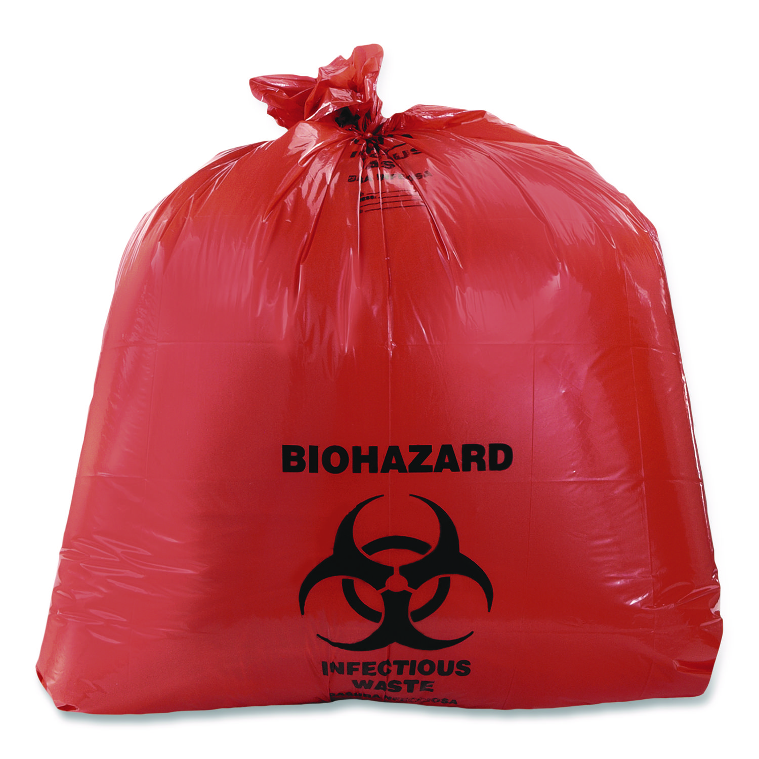 Healthcare Pre-Printed High-Density Can Liners, Biohazard: Infectious Waste, 45 gal, 16 mic, 40 x 48, Red, Flat Pack, 250/CT