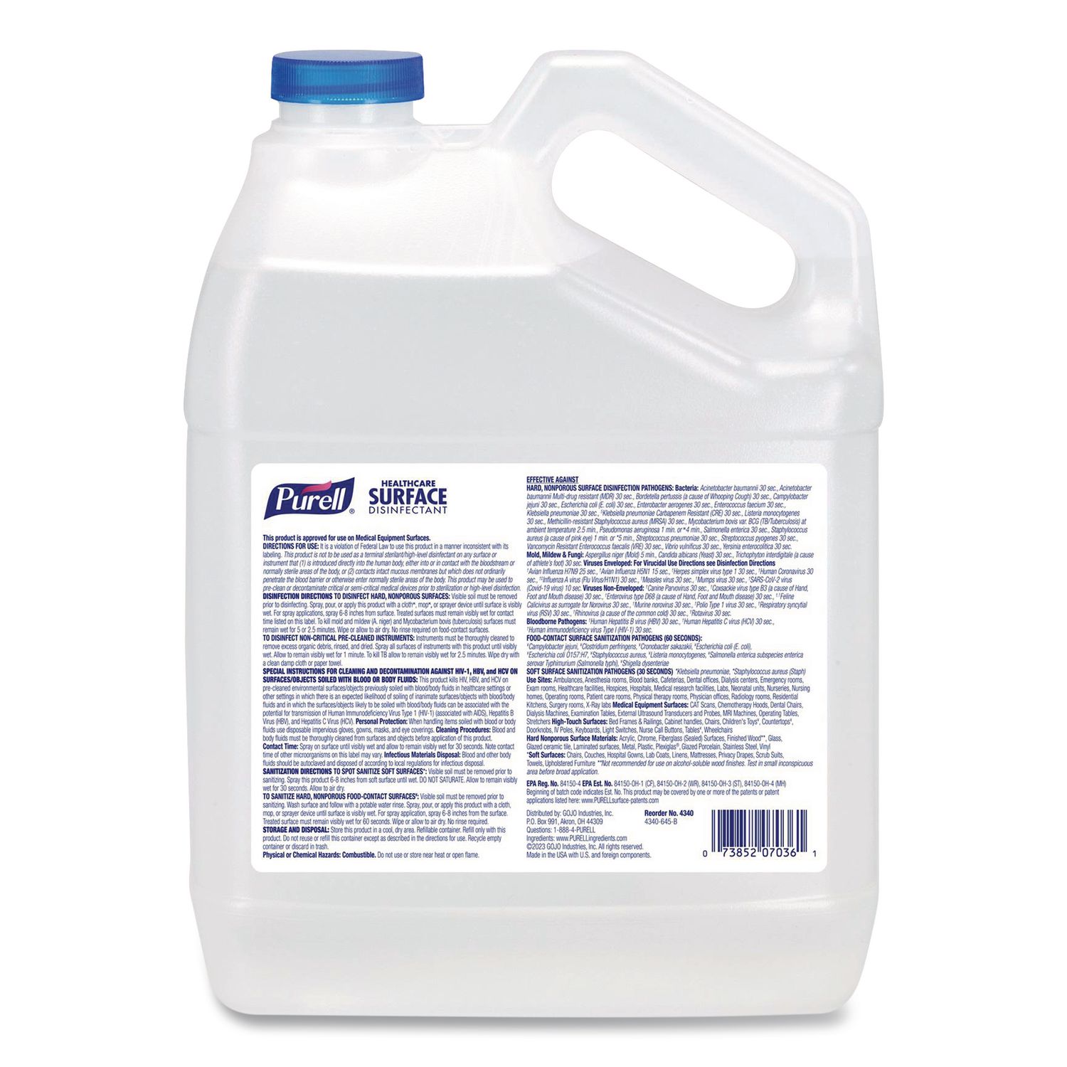 Healthcare Surface Disinfectant, Fragrance-Free, 1 gal Bottle, 4/Carton