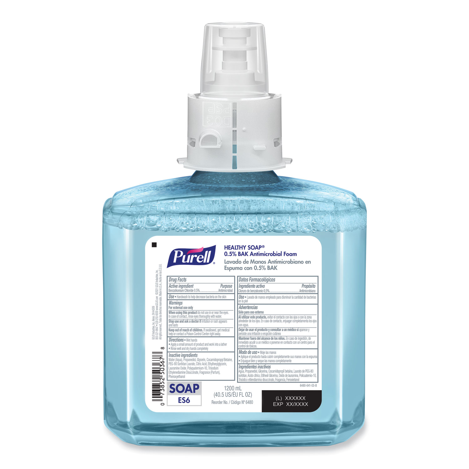 PURELL Brand HEALTHY SOAP 0.5% BAK Antimicrobial Foam is a specially formulated hand soap that effectively kills germs. The refreshing foam formulation is mild enough for frequent use and is free of dyes, phthalates, parabens and triclosan. This refill is designed for cost and labor savings. The transparent refill provides a visual cue that allows you to monitor soap levels with just a look. Refills have factory-sealed nozzles to help eliminate the risk of contamination. For Use With PURELL ES6 Soap Dispensers. Soap Type: Foam; Volume Capacity: 1,200 mL; Scent: Light Citrus Floral; Personal Soaps Application: Hand.