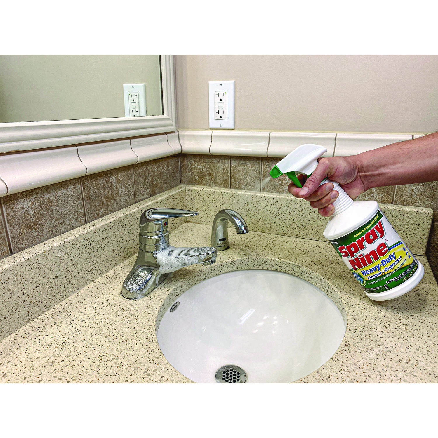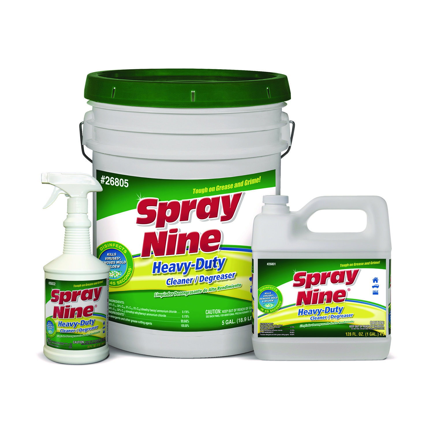 A professional-grade cleaner and disinfectant that removes all types of dirt, grease, grime and stains. One product with nine uses: 1. Cleans, 2. Degreases, 3. Disinfects against viruses, 4. Disinfects against bacteria, 5. Sanitizes, 6. Kills fungus, 7. Deodorizes, 8. Controls mold and mildew, 9. Removes stains. Application: Bathrooms; Breakrooms; Kitchens; Offices; Manufacturing Plants; Appliances; Equipment; Automotive; Medical Offices & Exam Rooms; Hospitals/Healthcare; Veterinary Medicine; Machinery/ Tools; Applicable Material: Tables; Walls; Floors; Countertops; Exterior Surfaces of Refrigerators; Tubs; Showers; Glazed Tile; Toilet Exteriors; Garbage Pails; Chemical Compound: N-Alkyl Dimethyl Benzyl Ammonium Chloride; N-Alkyl Dimethyl Ethybenzyl Ammonium Chloride; Ethoxylated Alcohols; Dipropylene Glycol Mononbutyl Ether; Dirt Types: Ash; Bacteria; Burned-on Food; Carpet Stains; Dirt; Dust; Exhaust Residue; Fabric Stains; Fresh Paint; Fungus; Germs; Grease; Grime; Hydraulic Fluid; Mildew; Mold; Oil; Organic Matter; Scuff Marks; Smoke Film; Soap Scum; Soot; Viruses; Wallpaper Paste; Water-Based Soil.