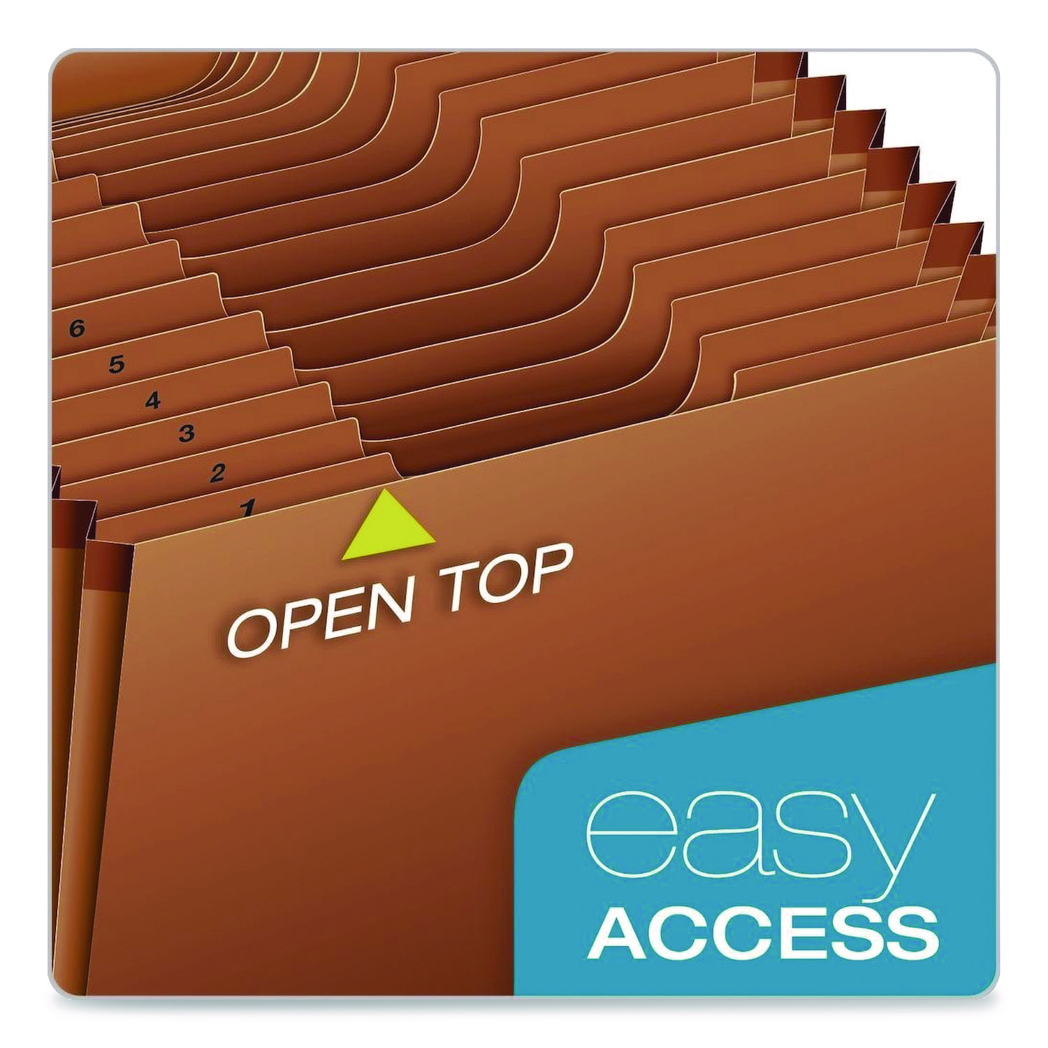 File and store documents safely with the Pendaflex® Heavy-Duty Expanding File. Featuring extra-thick, 80-pt soil-resistant covers and rip-proof Tyvek® reinforcement along the top and bottom of each gusset, this file is built to last. Index features extra-large, 1/3-cut double-top tabs. Left tab position is pre-labeled, and the right tab position is customizable. Open-Top Stadium-File Design. Pocket/Wallet Type: Documents/Files; Document Size Range: Legal; Color(s): Redrope; Color Family: Brown.