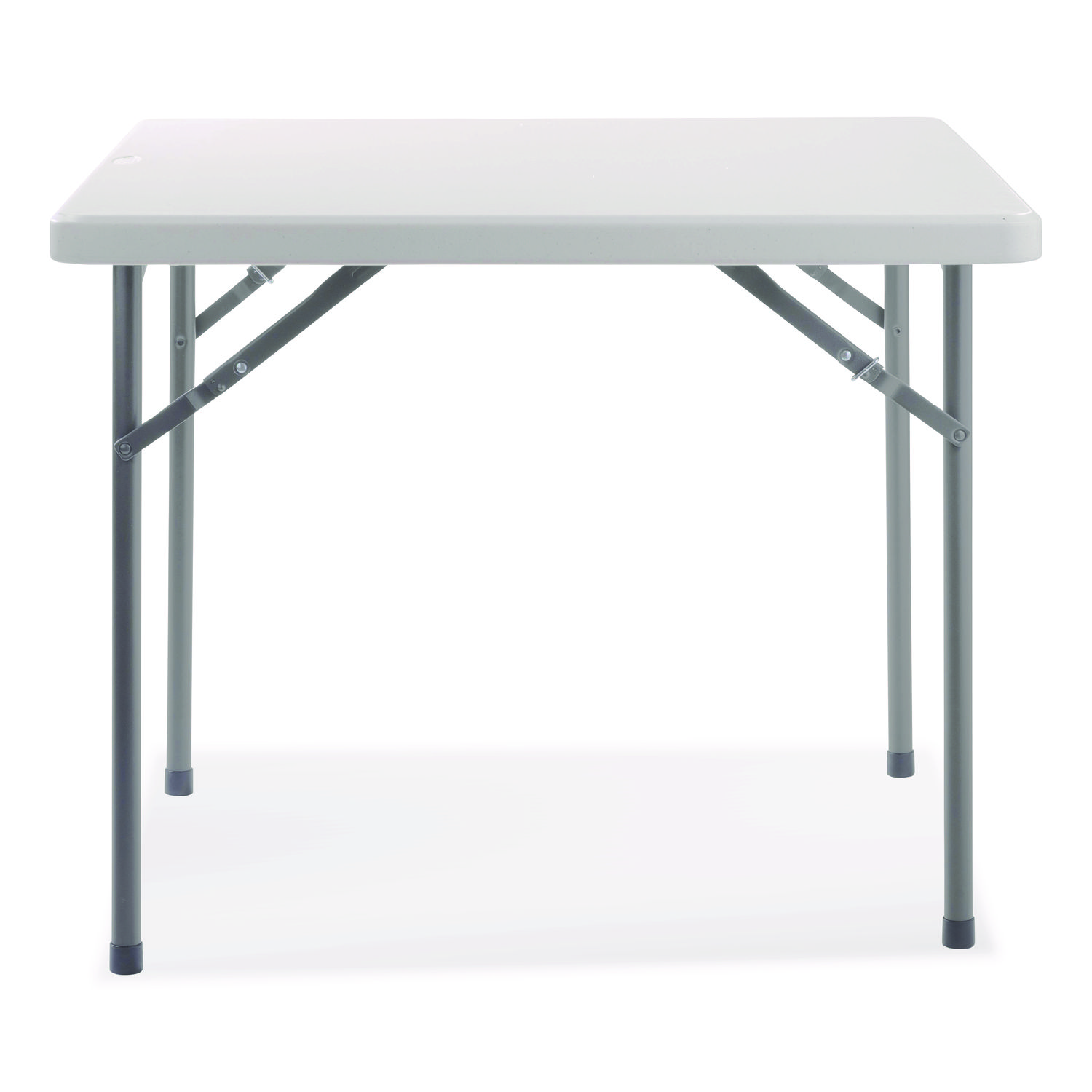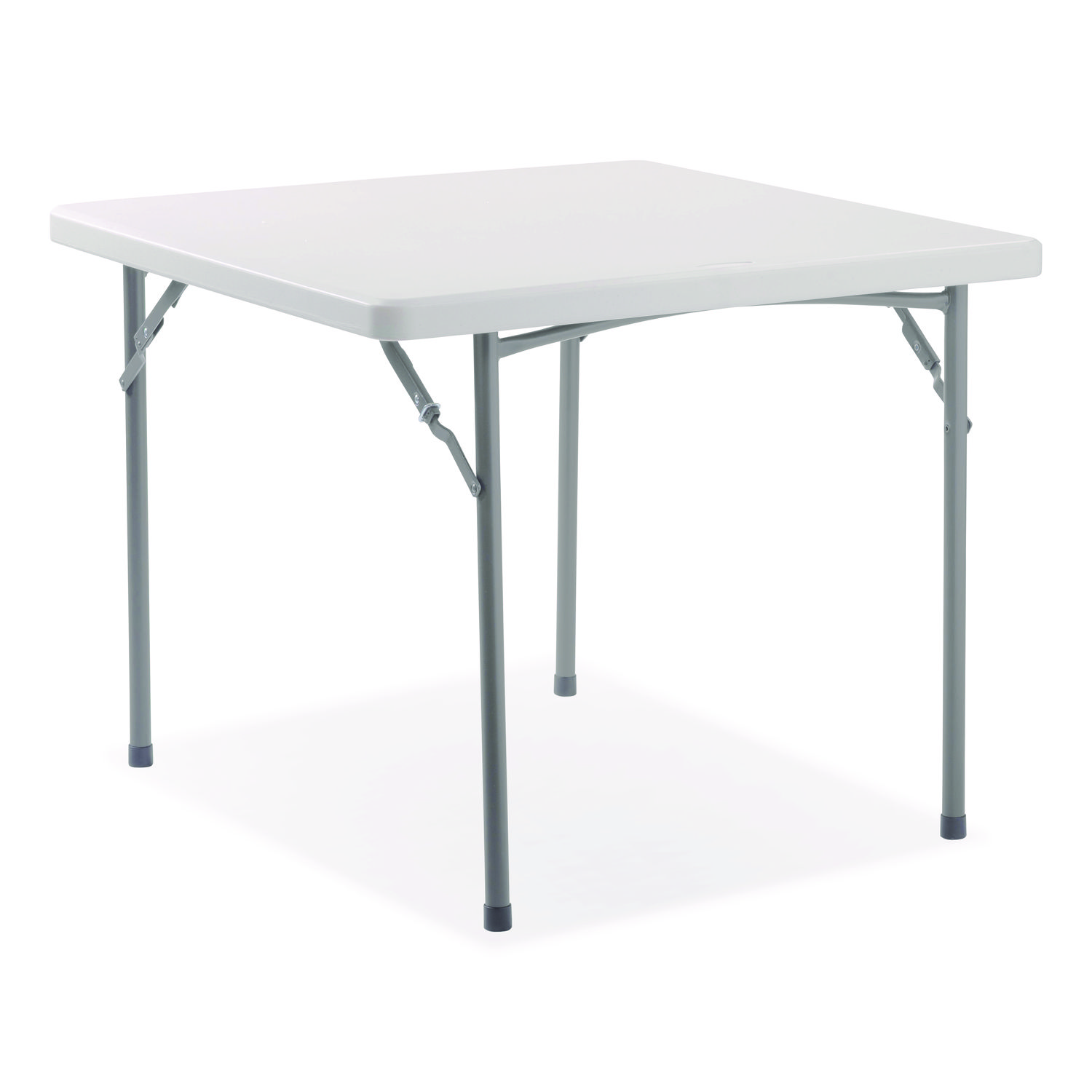 Our BT3636 square blow-molded plastic folding table is the perfect solution for home, office, picnic and cafeteria use. Suitable for indoor or outdoor in any application that calls for affordable, lightweight, weather-resistant and highly durable folding tables. Their lightly textured design keeps them scratch-resistant yet still enables a surface smooth enough for writing. The plastic tabletop is heat-resistant up to 212º F and designed with a non-bowing eggshell structure for fortification to hold up to 500 lbs of distributed weight! Paired with our 600 Series blow-molded, resin-plastic folding chairs featuring a heavy-duty, powder-coated 19-gauge tubular frame and a large, contoured seat and backrest for your comfort. Two cross braces both in front and in back for added support. V-tip stability plugs provide added reinforcement at the frame’s junction and replaceable glides prevent floor damage. Top Color: Speckled Gray; Color Family: Gray; Base Color: Gray; Top Shape: Square.