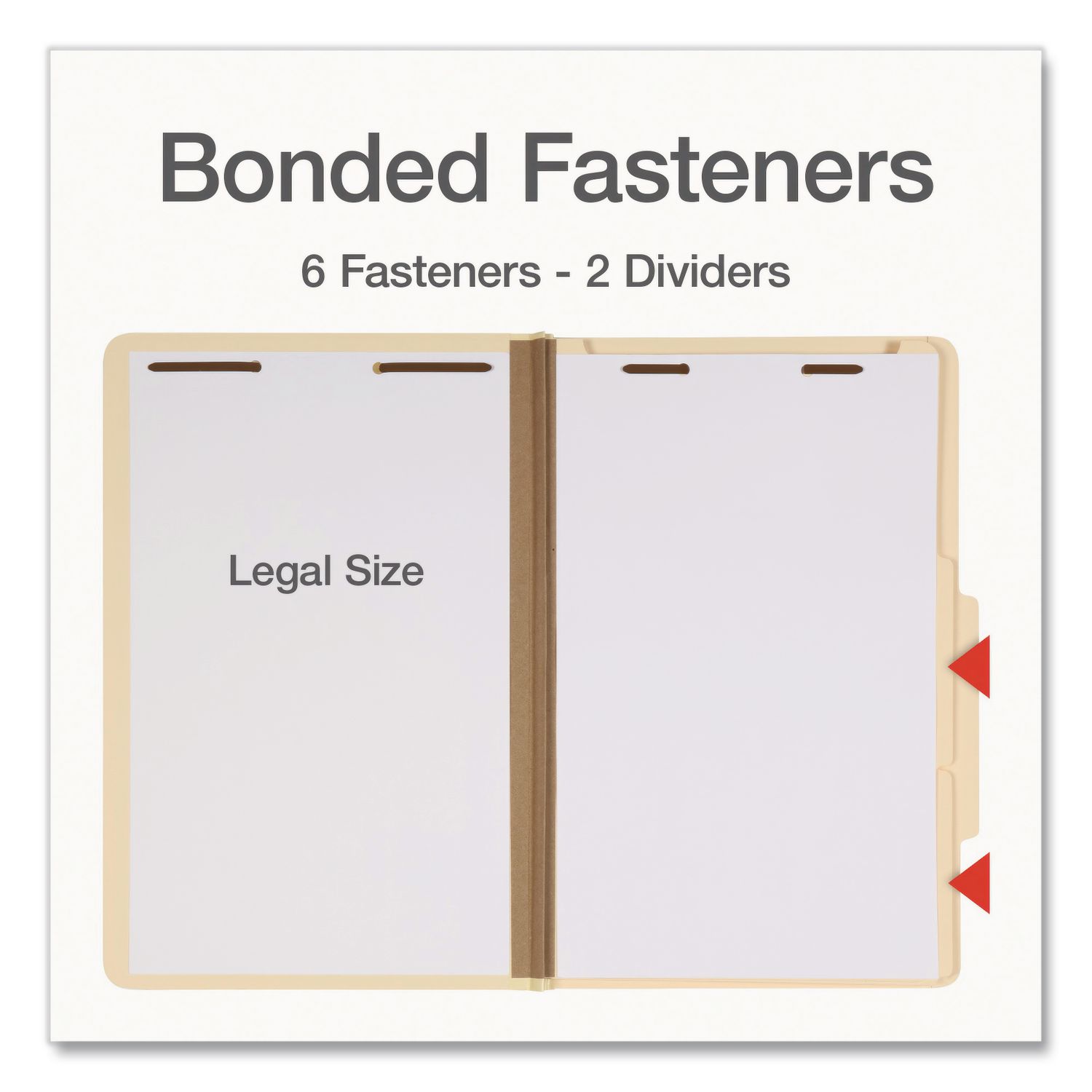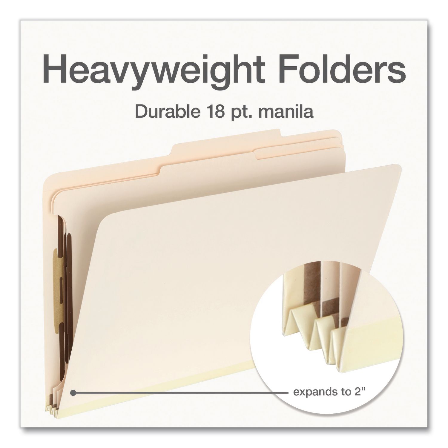 Heavy-Duty Pressboard Classification Folder, 2/5-Cut Tab, Expands 2″, 2 Dividers, 6 Fasteners, Legal Size, Manila, 10/Box