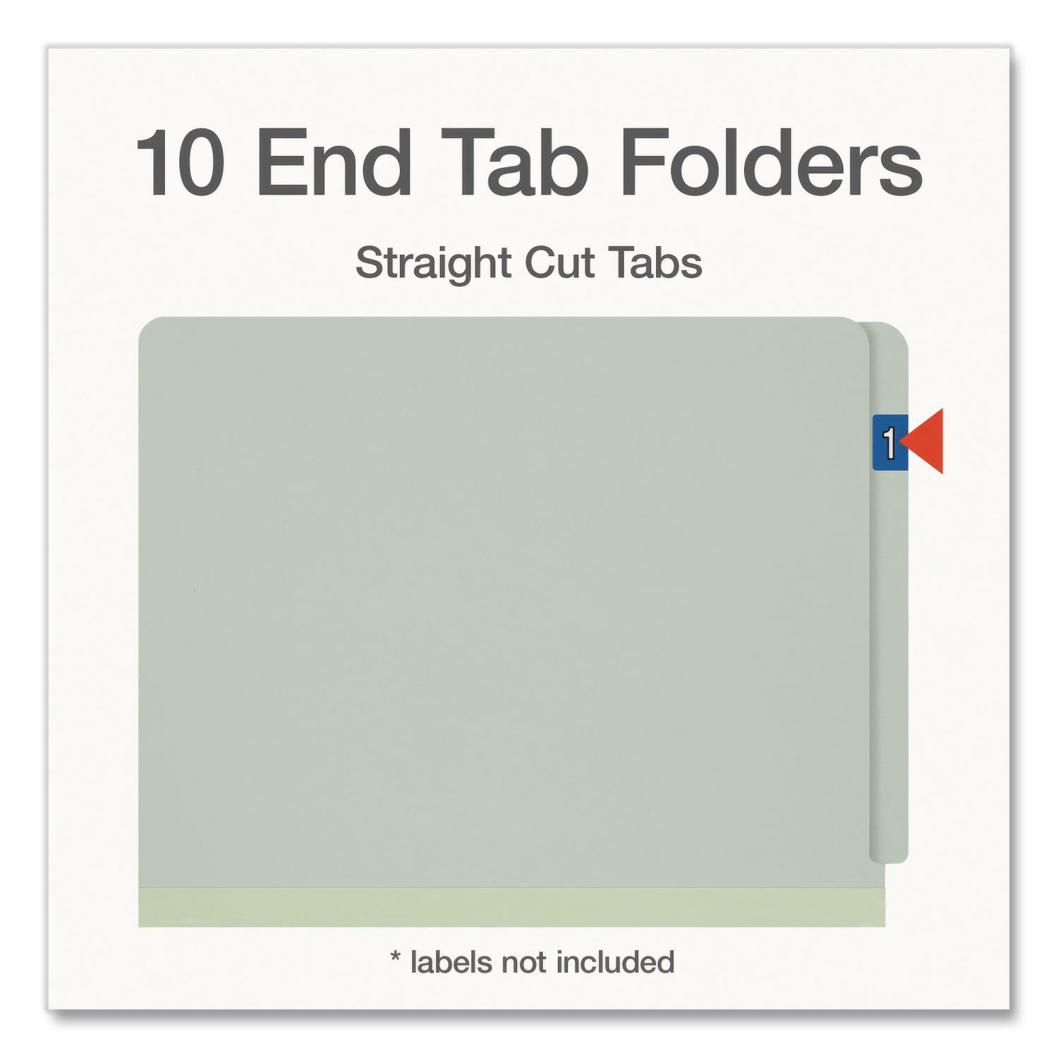 Heavy-Duty Pressboard End Tab Classification Folders, 3 Dividers, 8 Fasteners, Letter Size, Light Green, 10/Box