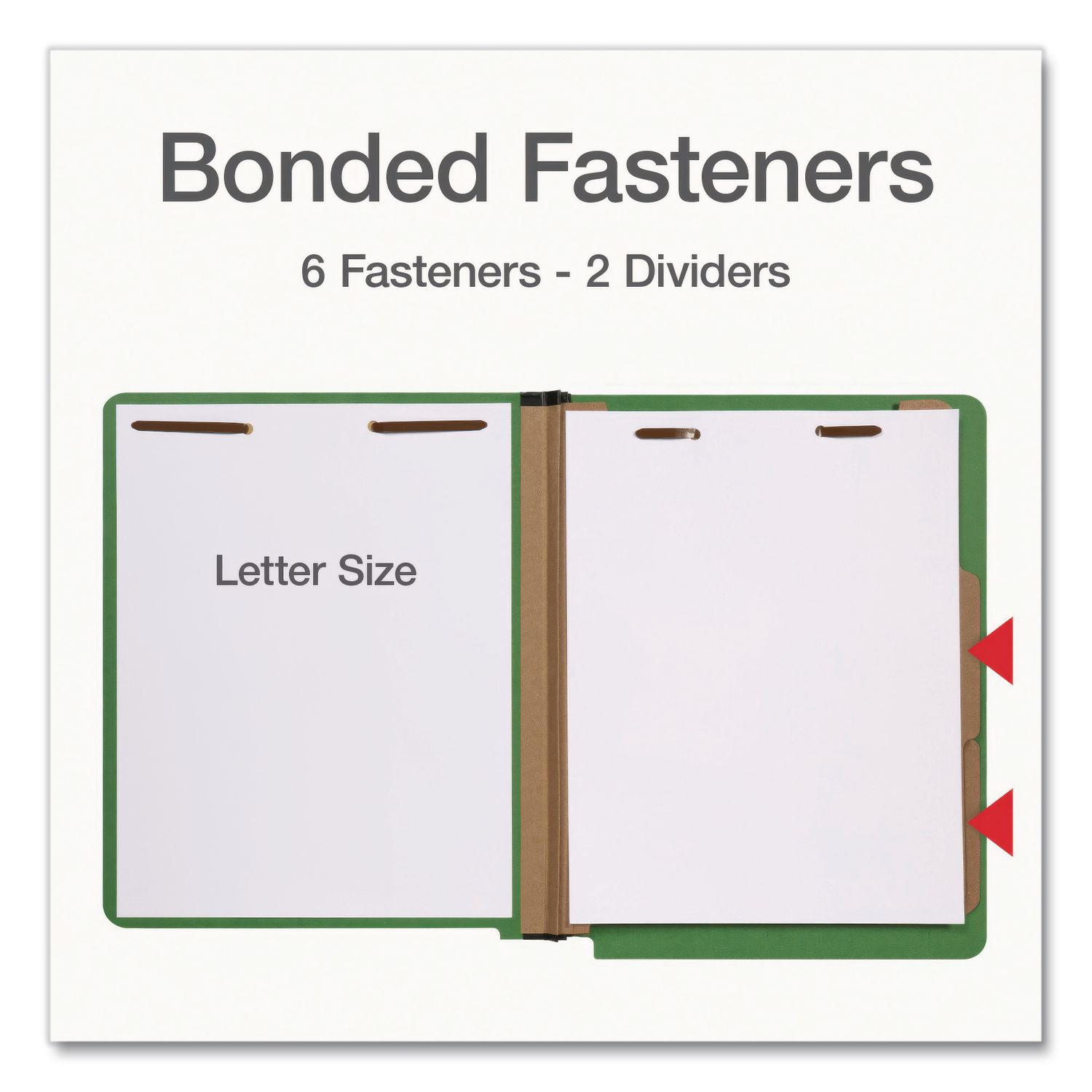 These pressboard classification folders have fasteners to keep your documents in order and in place and dividers to categorize your paperwork. Made from heavyweight 25 pt. paper to better withstand wear and tear. Bonded fasteners keep paperwork ordered. Each folder is scored along the bottom so you can expand it to fit more paper inside. Keep your paperwork ordered and easy to find. These folders have end tabs so your labels are always in view (does not include sticker labels). Folder Size: Letter; Total Number of Dividers: 2; Total Number of Fasteners: 6; Cover Tab Style: End Tab.