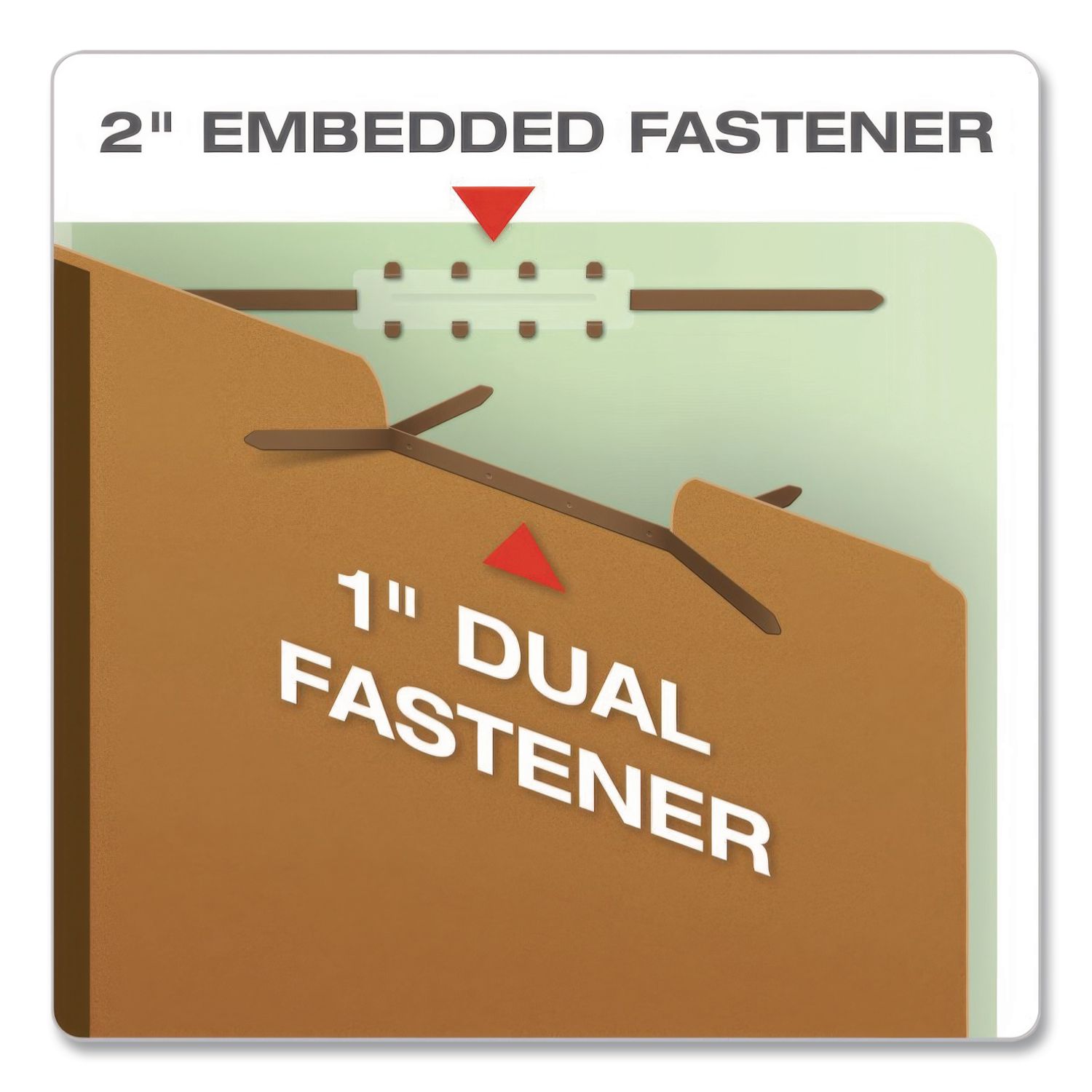 Heavy-Duty Pressboard End Tab Classification Folders, Expands 2.5″, 2 Dividers, 6 Fasteners, Letter Size, Light Green, 10/Box