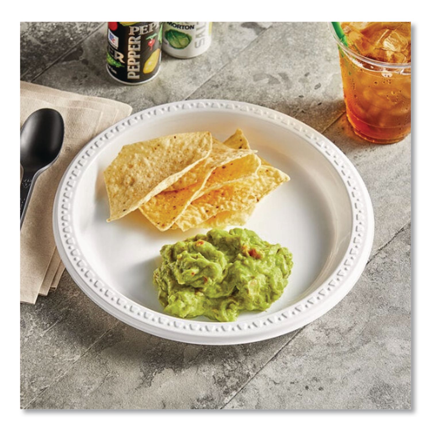 Premium-grade dinnerware provides superior strength and durability. Decorative, raised-rim border features a tasteful, contemporary design. Gloss-finished heavyweight plastic ensures rigid, cut- and leak-proof performance. Nesting, stackable pieces help you conserve storage space. Heavyweight. Dinnerware Type: Plate; Material Type: Plastic; Material(s): Plastic; Shape: Round.