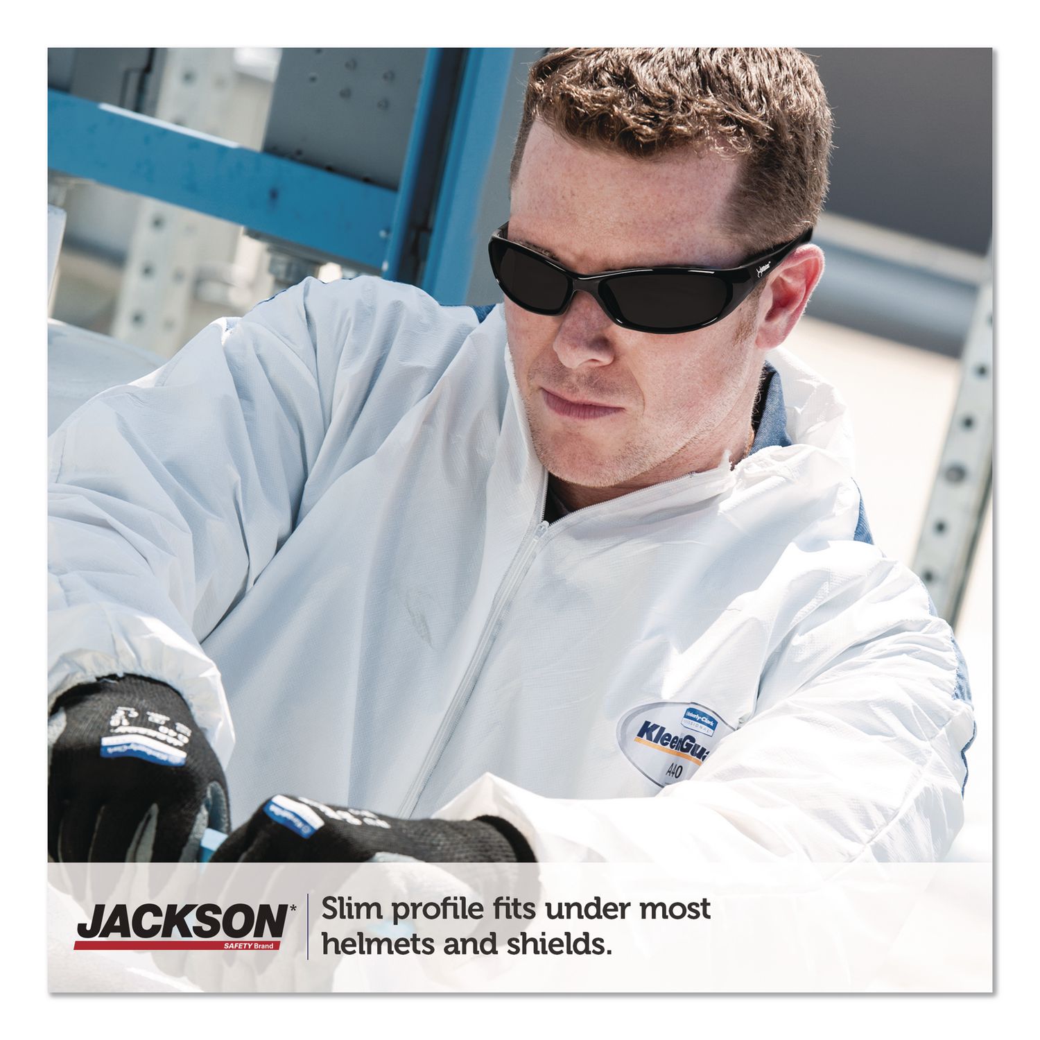 Safety glasses feature a streamlined, modern style for a sunglass-like appearance. Extremely lightweight design makes them comfortable for extended wear. Durable, high-performance polycarbonate lenses. Flex point temples increase comfort and stability. Glasses meet ANSI Z87.1+ standard for impact resistance. Safety Glasses Style: Full Frame; Frame Color: Black; Arm Color: Black; Frame/Arm Material: Plastic.
