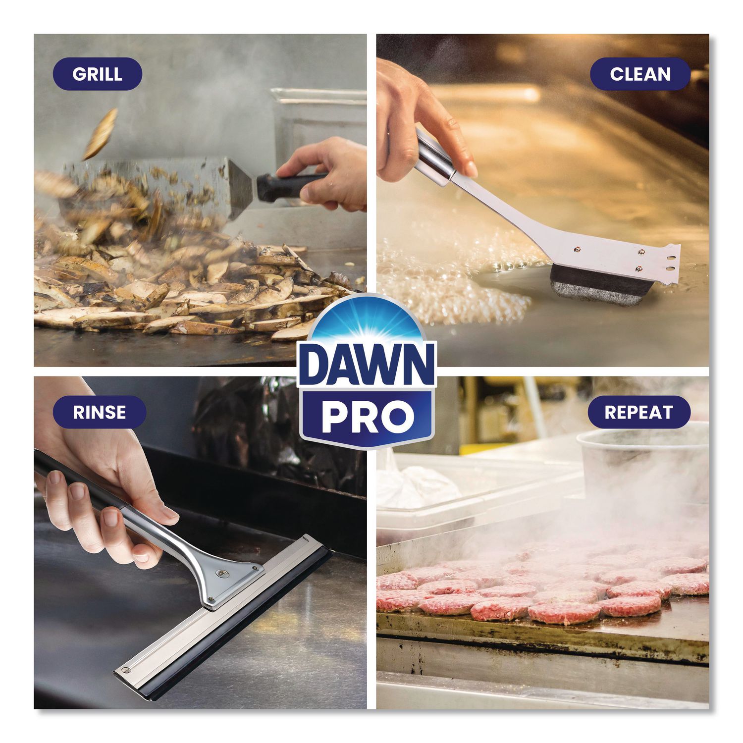 Introducing DAWN PRO Hi-Temp Grill Cleaner, specially formulated for commercial kitchens! This powerful grill cleaner effectively removes grease and burnt-on food from grills and griddles, ensuring a clean and safe cooking environment. Flip-top cap for easy dispensing. Ideal for restaurants, catering services, food trucks and more, this cleaner is safe for food contact surfaces and works effectively on flat-top grills and griddles. Experience the professional-grade cleaning power that ensures a clean, safe and efficient kitchen. Application: Grill Cleaner; Applicable Material: Steel; Chemical Compound: Glycerin (56-81-5); Water (7732-18-5); Potassium Carbonate (584-08-7); Colorants (1934-21-0); Contains No Phosphates; Dirt Types: Grease; Oil.