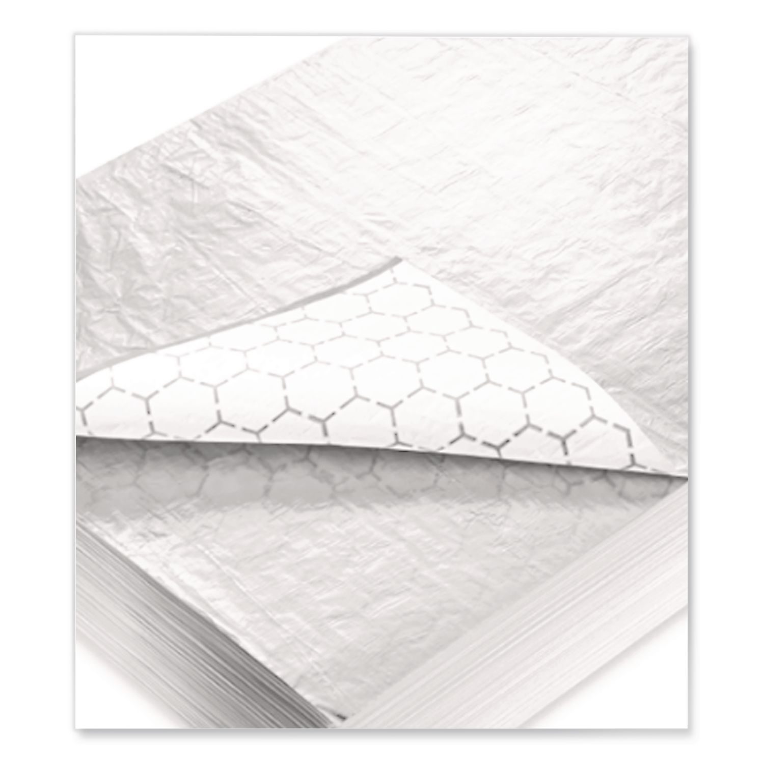 Superior dead-fold action ensures tight-hold wrapping. Two layers: reflective foil and moisture-absorbing paper help keep crispy breads and buns fresh. Honeycomb design creates air pockets, enabling superior heat retention. Material(s): Foil/Paper; Length: 16″; Width: 14″; Product Packaging: Pack.