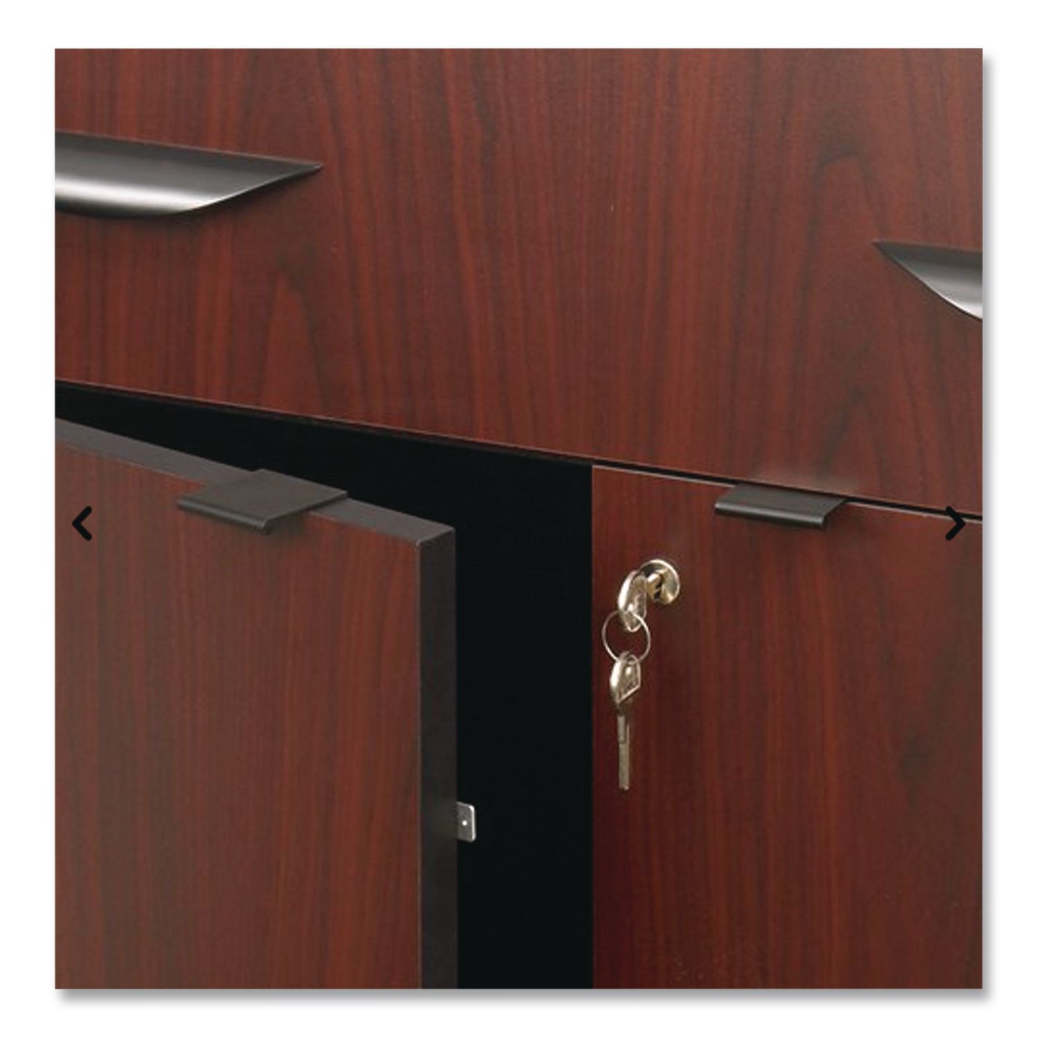 Welcome guests and employees with style and hospitality using this versatile and functional serving station. The drop-leaf design extends to provide a spacious serving area, perfect for coffee stations, snack setups or meeting refreshments. The locking double-door cabinet offers secure storage, featuring a height-adjustable interior shelf to neatly organize coffee supplies, cups and other essentials. A convenient drawer keeps silverware, napkins and smaller items easily accessible, ensuring a well-organized hospitality area. Built for durability and elegance, this stand is constructed from 0.75″ furniture-grade wood with a stain- and scratch-resistant laminate finish, maintaining a professional appearance even in high-traffic areas. Assembly is made simple with cam-lock fasteners, allowing for quick and secure setup. Whether in a breakroom, conference space or reception area, this stylish and functional serving station is the perfect addition to enhance your office’s hospitality experience. Upgrade your space with convenience and class today! Drop Leaves—Leaves on both sides nearly double the service area when folded out but easily fold down to save space in cramped areas. Material(s): Furniture-Grade Particleboard; Overall Material Type: Engineered Wood; Color(s): Mahogany; Color Family: Mahogany.