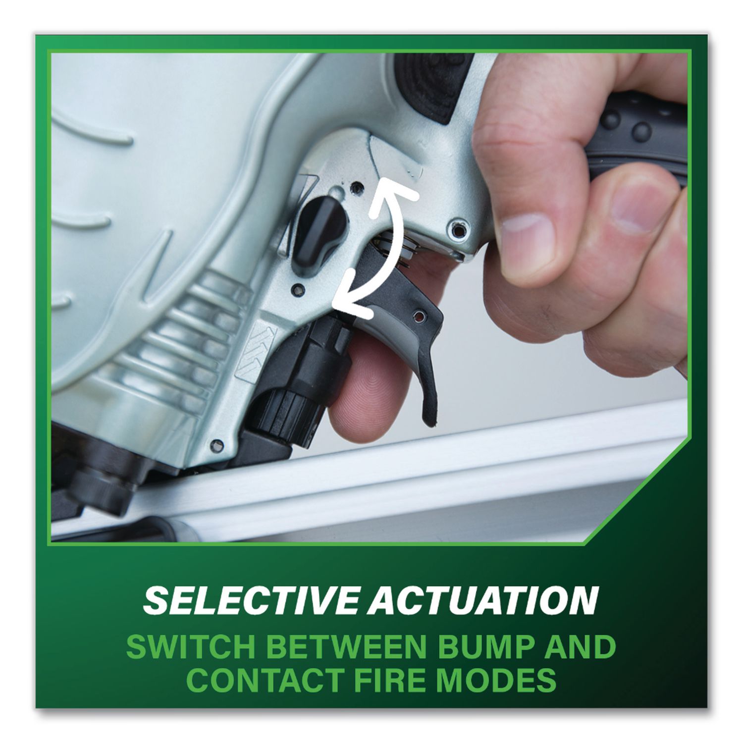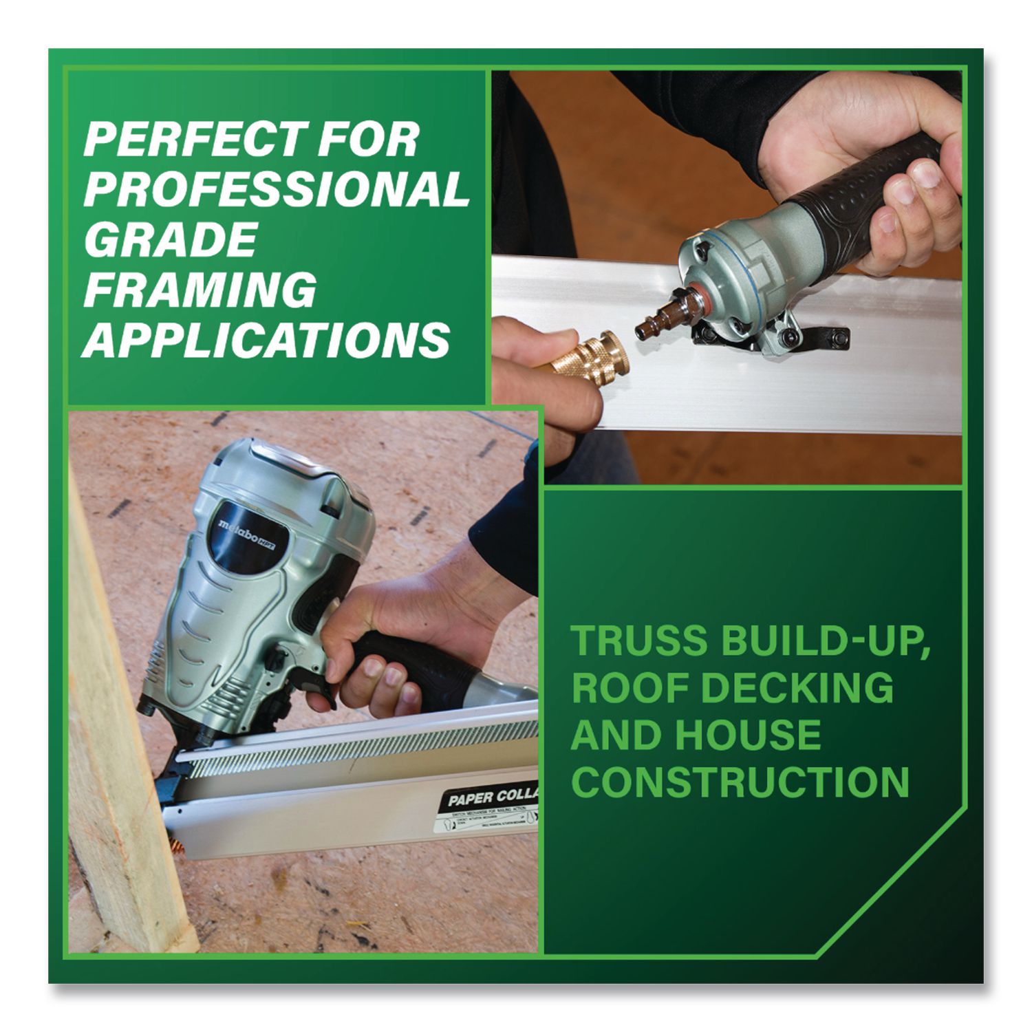 This framing nailer drives paper collated nails from 2″ up to 3″ length and features next- generation industrial design. The redesigned head guard allows for faster and easier disassembly process, saving valuable time during tool maintenance. Weighing only 7 lbs, it is easy to use all day, while still providing the power of a bulkier, heavier nailer. It can be used for floor and framing, truss build-up, window build-up, sub flooring, roof decking, wall sheathing and housing construction. Smaller, faster and has more style than other models. It offers state-of-the-art performance and futuristic good looks with a lighter weight, too. A Flip Fire switch lets you choose sequential or bump fire modes depending on how fast or how carefully you need to work, and a tool-free depth-of-drive adjustment means less downtime and more productivity. Maximum Fastener Length: 3.5″; Fastener Type: Paper Collated Framing Nails; Magazine Angle: 30°; Firing Modes: Bump; Sequential.