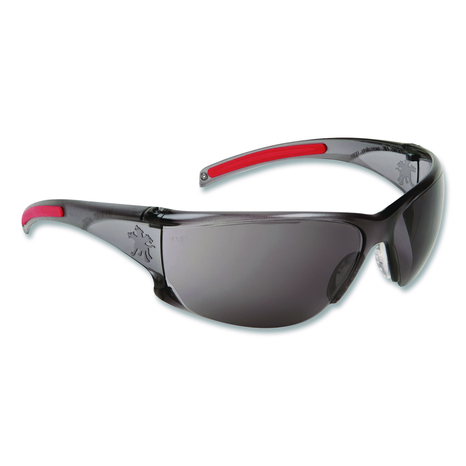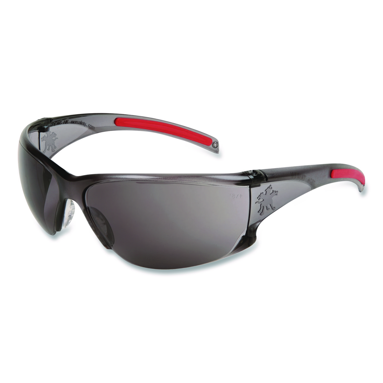 Hulk® HK1 Series Safety Glasses provide all the safety features you want in a comfortable and stylish package. Wide-format, wraparound lens delivers an outstanding orbital seal to protect one of your most treasured belongings—your eyesight. Soft and secure Thermal Plastic Rubber (TPR) nose pads ensure long-lasting comfort, and the soft, non-slip temples help hold your eyewear firmly in place. Safety Glasses Style: Full Frame; Frame Color: Smoke/Red; Arm Color: Smoke/Red; Frame/Arm Material: Plastic; Thermal Plastic Rubber (TPR).