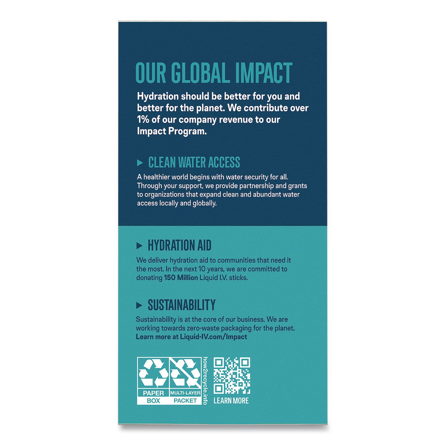 The Hydration Multiplier from LIQUID I.V.® is a great-tasting, non-GMO electrolyte powder drink mix powered by Cellular Transport Technology (CTT) designed to enhance rapid absorption of water and other key ingredients into the bloodstream. Typically, when you drink fluids, they pass through the entire digestive system, losing water before your body can absorb it. CTT uses a precise ratio of sodium, glucose and potassium to create an osmotic force that allows water to be delivered to the bloodstream earlier on in the digestive system. The LIQUID I.V.® Hydration Multiplier can hydrate faster and more efficiently than water alone. One serving contains three times the electrolytes of traditional sports drinks and five essential vitamins. Beverage Type: Sports Drink Mix; Flavor: Lemon-Lime; Product Packaging: Stick; Capacity (Weight): 0.56 oz.
