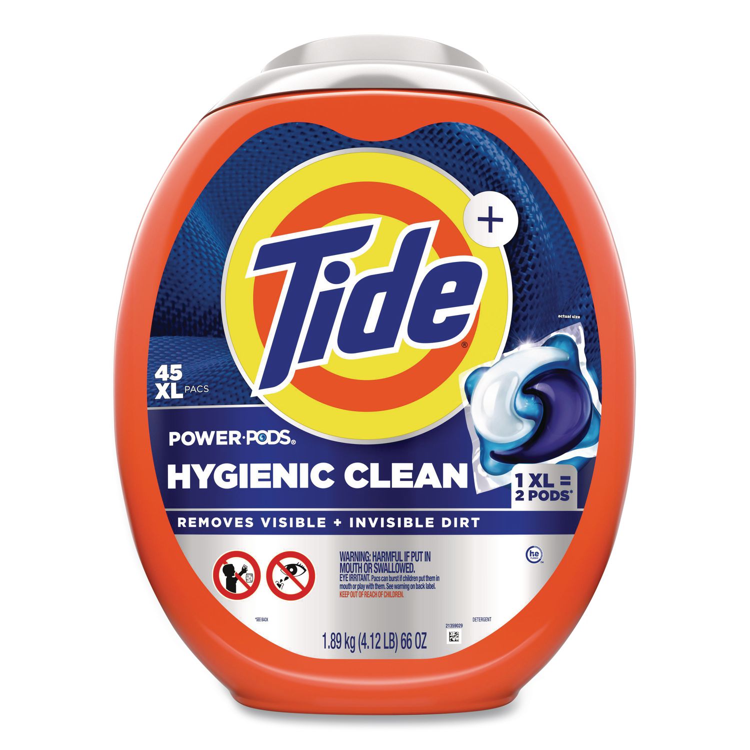 Everything leaves a trace on your clothes from what you eat, to where you go, to what you do. But more often than not, the dirt residue and the body soils left on your garments aren’t necessarily visible and just because you can’t see it, doesn’t mean it isn’t there. Designed to clean fabrics down to the microscopic level, Tide® Heavy Duty 10X Hygienic Clean Power PODS® remove both visible and invisible dirt from your garments, giving you a clean you can trust. HE Compatible. High Efficiency—Designed for HE machines. Application: HE Laundry Detergent; Applicable Material: Fabric; Chemical Compound: MEA C10-16 Alkylbenzenesulfonate; MEA Laureth Sulfate; C10-16 Pareth; Propylene Glycol; Glycerin; MEA Salts Of C12-18 Fatty Acids; Polyethyleneimine Alkoxylated; Tetrasodium Glutamate Diacetate; PEG-136 Polyvinyl Alcohol; MEA-Citrate; Sodium Bisulfite; Hydrogenated Castor Oil; Disodium Distyrylbiphenyl Disulfonate; Zeolite; Methyl Di-T-Butyl Hydroxyhydrocinnamate; Subtilisin; Amylase Enzyme; Mannanase Enzyme; Styrene; Denatonium Benzoate; Polyvinyl Alcohol Polymer; Colorants; Fragrances; Water; Dirt Types: Food Stains; Grass Stains; Grease; Oil-Based Soil; Organic Matter; Water-Based Soil.