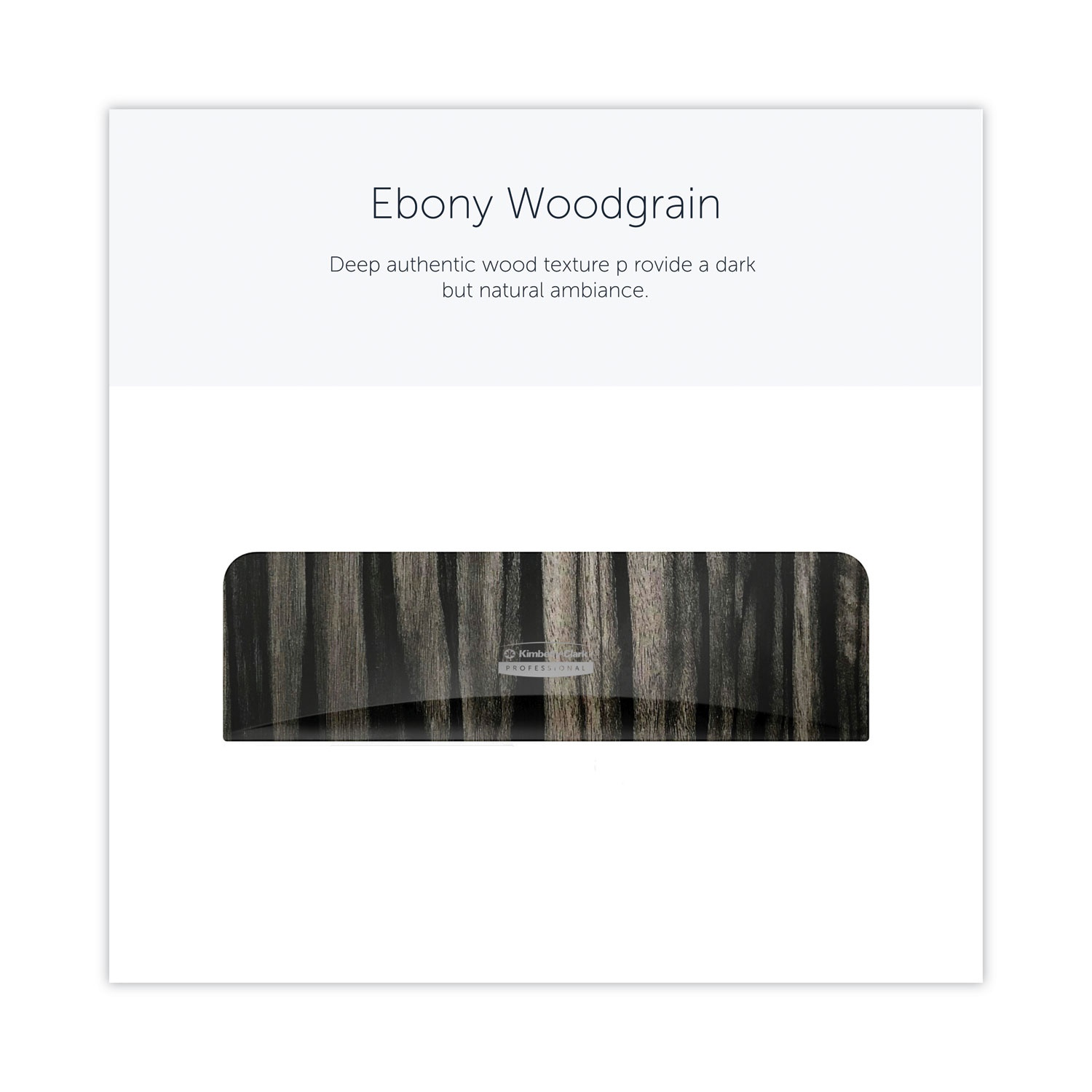 Reimagine the look and feel of your restroom with the ICON™ toilet paper dispenser’s quick and easy faceplate swap. Designed to take minimal effort, changing the faceplate is literally a snap in a few steps. Choose from six designer options. The range of contemporary classic faceplates offers a practical, yet modern take on traditional designs including a unique selection of faceplates designed to add a natural accent to your washroom environment. Horizontal. Color(s): Ebony Woodgrain; Material(s): Plastic; Width: 3.56″; Depth: 12″.