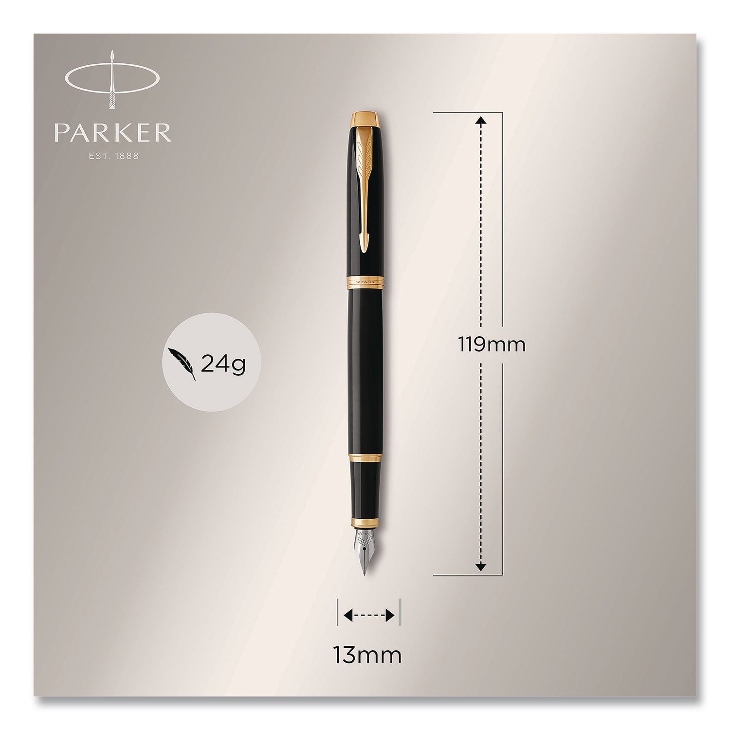 Polished and professional, the Parker® IM® Fountain Pen is an ideal partner with unlimited potential. Its sleek, tapered barrel pairs seamlessly with its innovative design to make a striking statement. Crafted with an intense lacquered body accented with metallic trim and packed in a Parker® premium gift box, the IM® pen makes a memorable gift for anyone who’d wish to bring refined style to every writing occasion. Providing excellent control, the fine stainless-steel nib is shaped to ensure you always achieve the optimal writing angle. For use with Quink ink cartridges and convertible to ink bottle filling, every detail of the Parker® IM® Fountain Pen has been refined to deliver a writing experience that’s faithful to the Parker® brand’s more than 125-year heritage. Pen Sub-Brand & Product Family: IM®; Pen Type: Fountain Pen; Pen Style: Stick; Pen Tip Type: Fountain Nib.