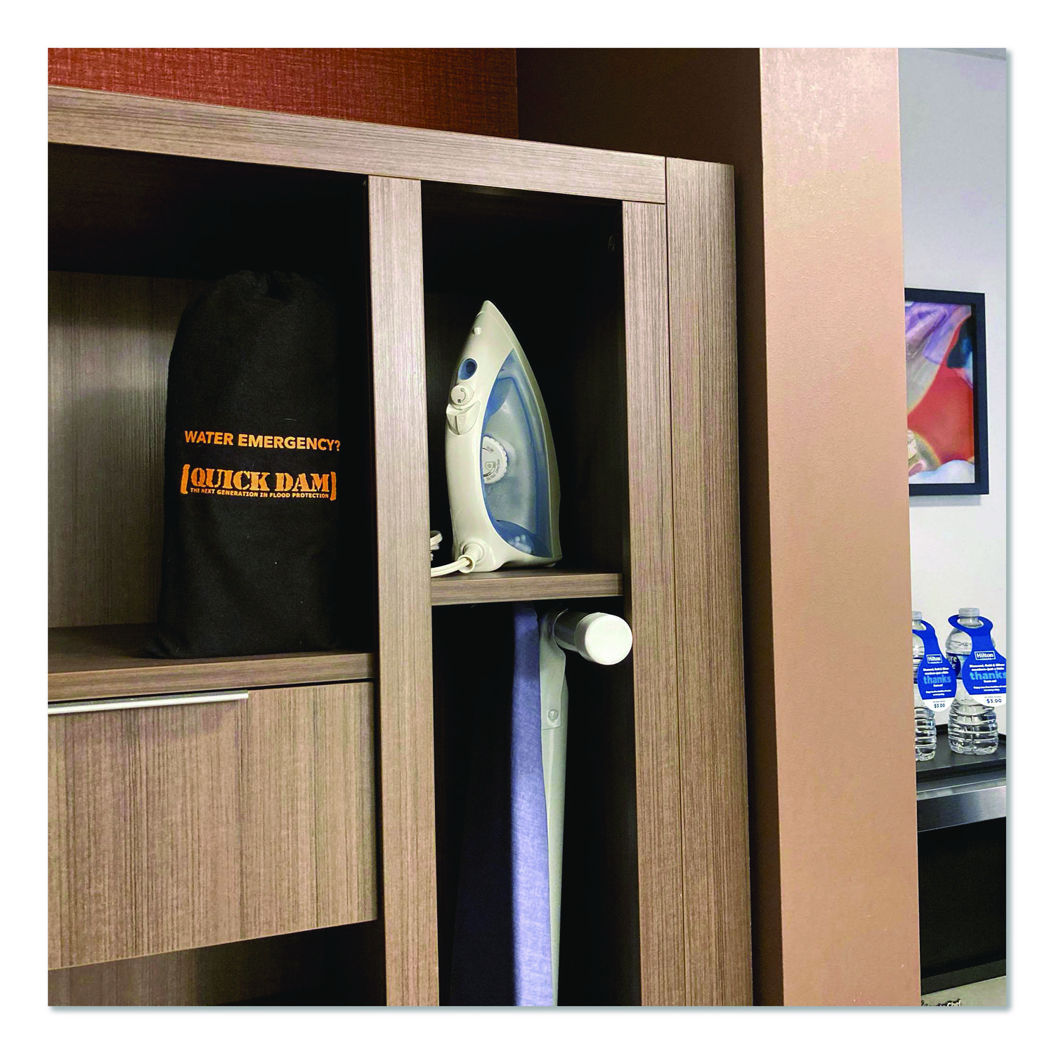Quick Dam Water Dams quickly absorb and gel water, swelling to create a barrier to control problem flood water. Height: 0.39″ Drip Mat; 2.5″ Dam; Length: 2 ft Drip Mat; 8 ft Dam; Width: 2 ft Drip Mat; 2.5″ Dam; Color(s): Orange/White.
