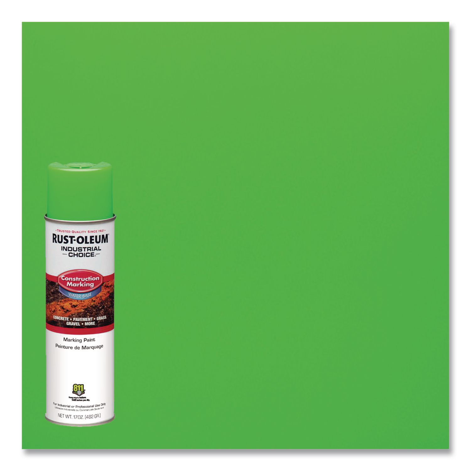 Create bold, durable lines with Rust-Oleum® Industrial Choice® Construction Marking Paint. This water-based formula is especially designed for the rigorous demands of construction, excavation, surveying, landscaping and other commercial operations. Paint Sub-Category: Spray Paint; Intended Application Environment: Interior/Exterior; Finish/Sheen: Gloss; Color(s): Fluorescent Green.