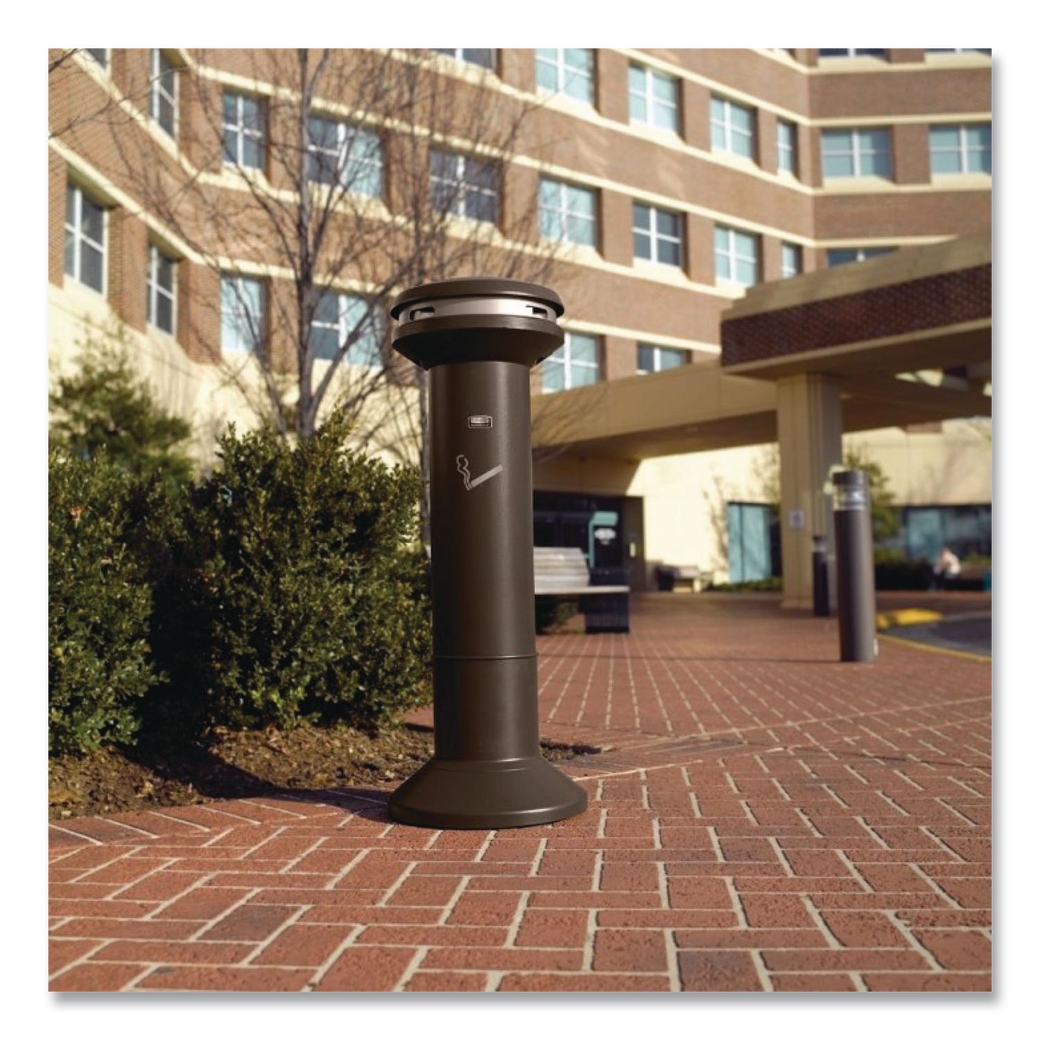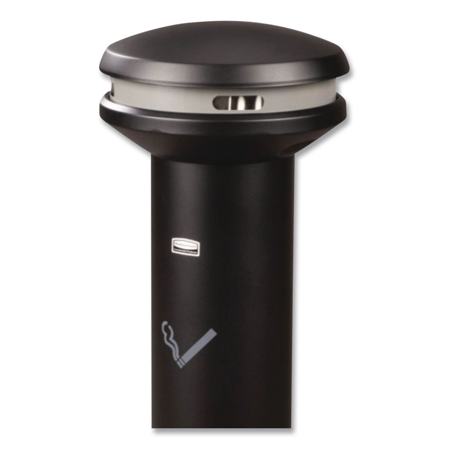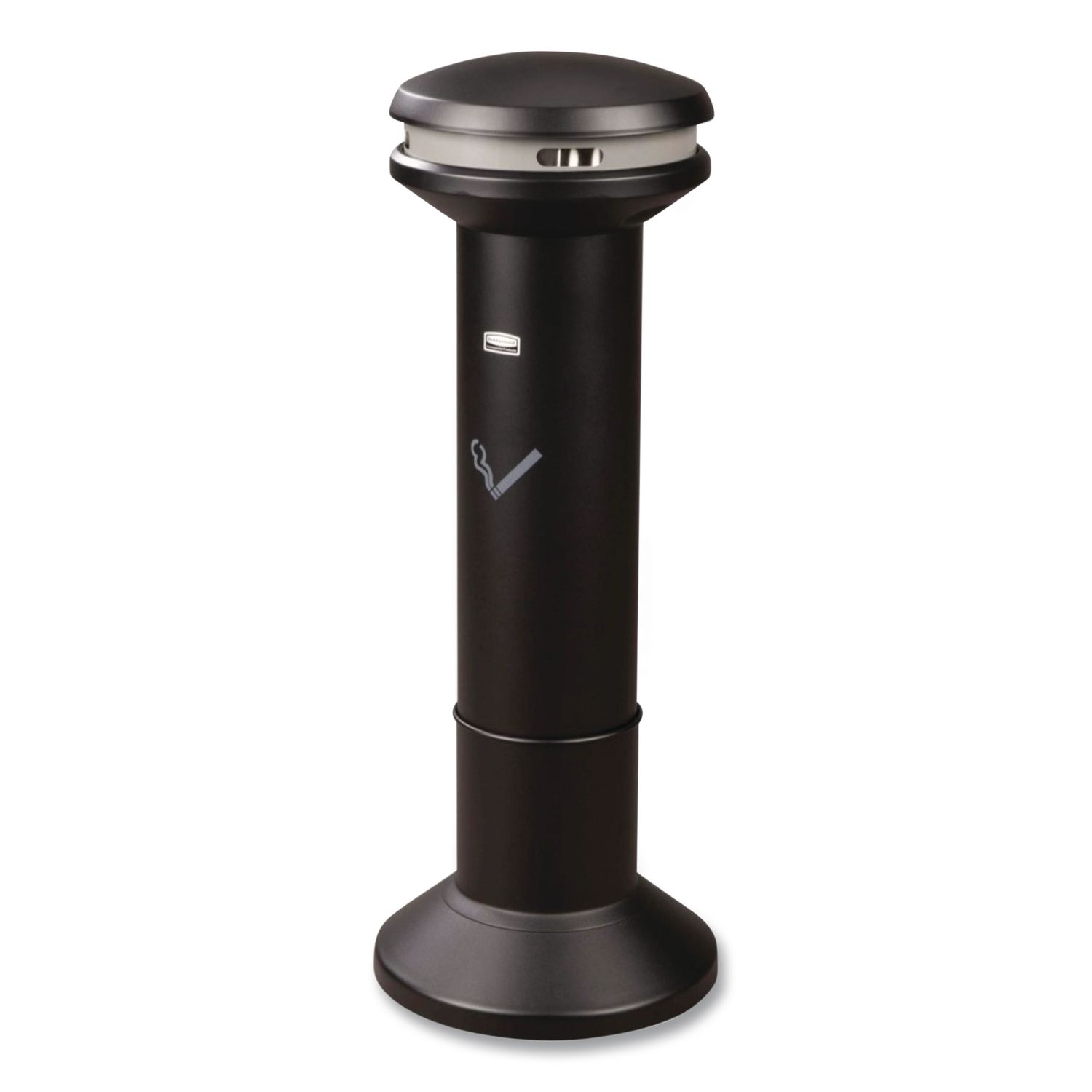 The Rubbermaid® Commercial Stainless Steel Infinity™ Ultra-High Capacity Smokers Station offers sophisticated styling and all-metal construction for attractive and efficient smoking litter management. The Smokers Station includes unobstructed funnels to reduce jamming during cigarette disposal. The round, metal smoking ash urns are used for cigarette disposal and have a stainless steel snuff plate to put out cigarettes and minimize smoldering. Stainless steel resists rust, stains and corrosion. A domed top helps prevent water from pooling. The 360-degree disposal opening offers convenient access. Padlock tabs allow the urn to be locked to help prevent tampering and theft. Guidance tabs on the collar and base facilitate emptying. Ultra-High Capacity. Shape: Cylindrical; Material(s): Metal; Color(s): Black; Color Family: Black.