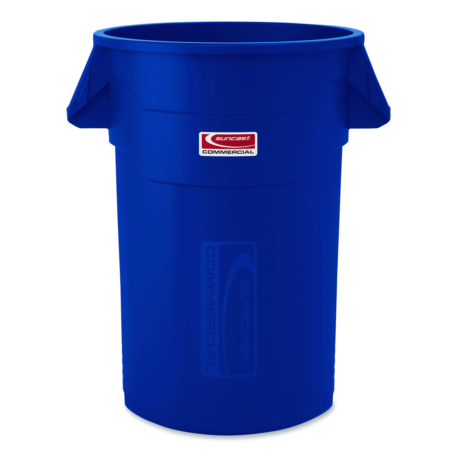 The Suncast Commercial® injection molded utility trash can is manufactured to last longer and be more durable than competing cans. This trash can will not rust and is resistant to denting and bending. The vented channels aid in reducing the force required to remove a filled can liner, while the side handles allow for an effortless lifting and easy transportation. Waste Receptacle Type: Indoor All-Purpose Waste Bin; Material(s): Plastic; Resin; Application: Indoor All-Purpose Waste Disposal; Interior Volume Capacity: 44 gal.