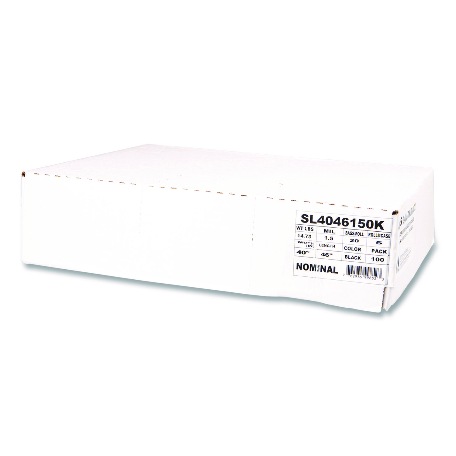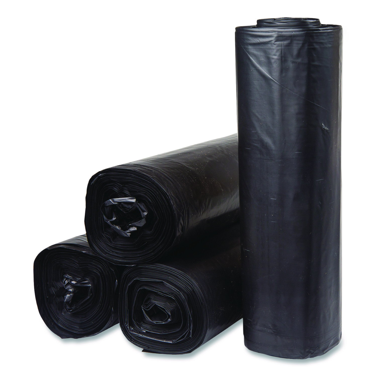 Institutional Low-Density Can Liners, 45 gal, 1.5 mil, 40″ x 46″, Black, Interleaved Roll, 20 Bags/Roll, 5 Rolls/Carton