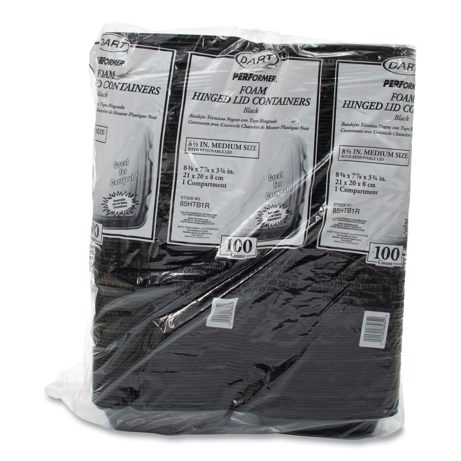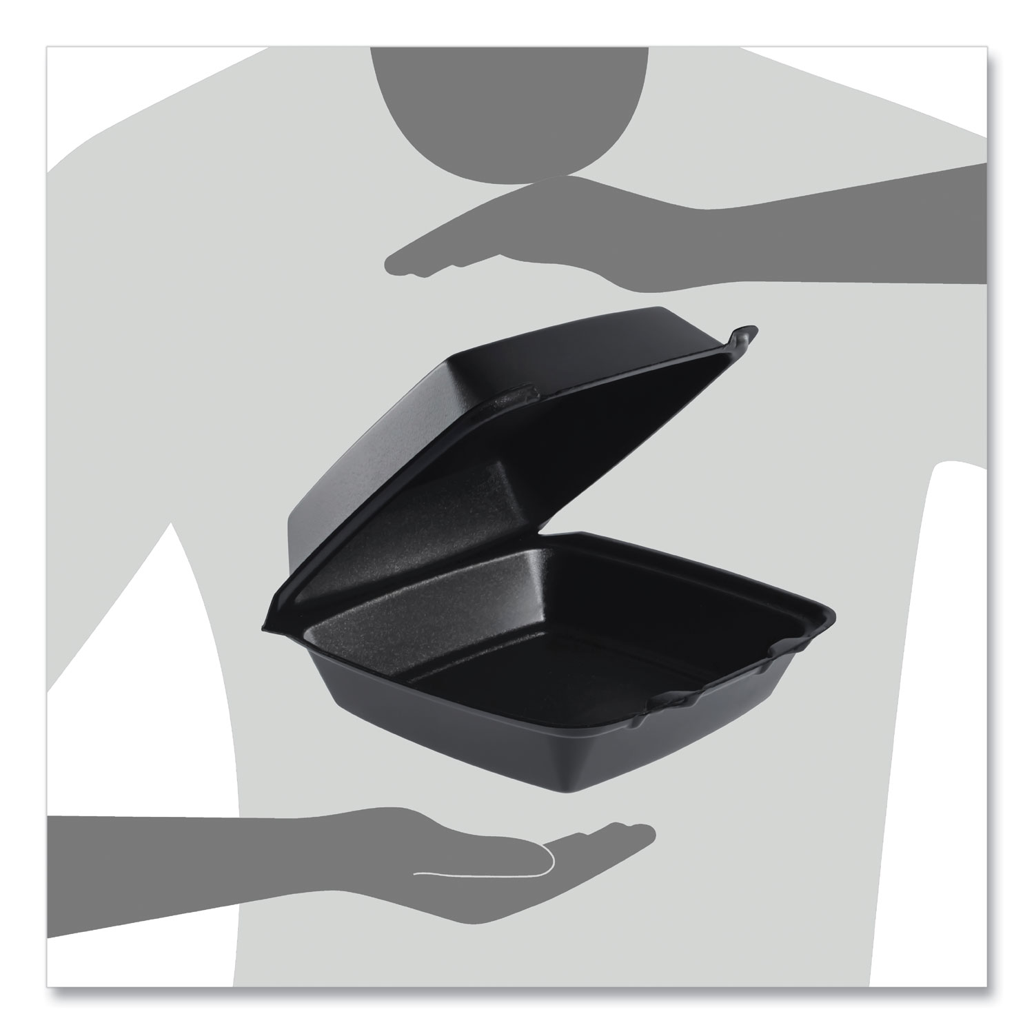 Secure closure improves handling and helps protect against accidental openings. High insulation qualities make them ideal for transporting and storing both hot and cold foods. Carryout service wouldn’t be complete without them. Hinged lid containers feature the Performer perforated hinge. This one-of-a-kind feature allows the container’s lid to easily be removed, making for a less cluttered dining experience and providing an extra plate for meal sharing. Food Container Type: Hinged Lid Container; Material(s): Extruded Polystyrene; Material Type: Foam; Color(s): Black.