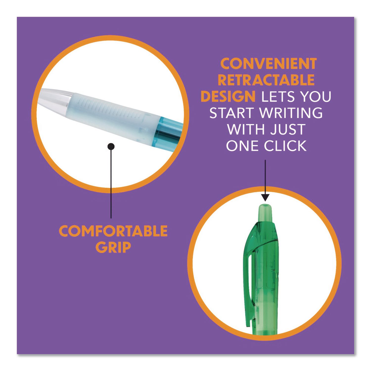 The viral pen is back! Experience vivid color and smooth writing with BIC® Intensity® Clic Gel Pens. Perfect for everyday use at work, at school or at home, their bold and vibrant, easy-flowing gel ink delivers fluid, effortless writing, while their cushy grip delivers a controlled yet comfortable hold, making them ideal for prolonged writing sessions. Designed for convenience, these retractable pens get you writing with just one click. Pen Sub-Brand & Product Family: Intensity® Clic; Pen Type: Gel Pen; Pen Style: Retractable; Pen Tip Type: Conical.