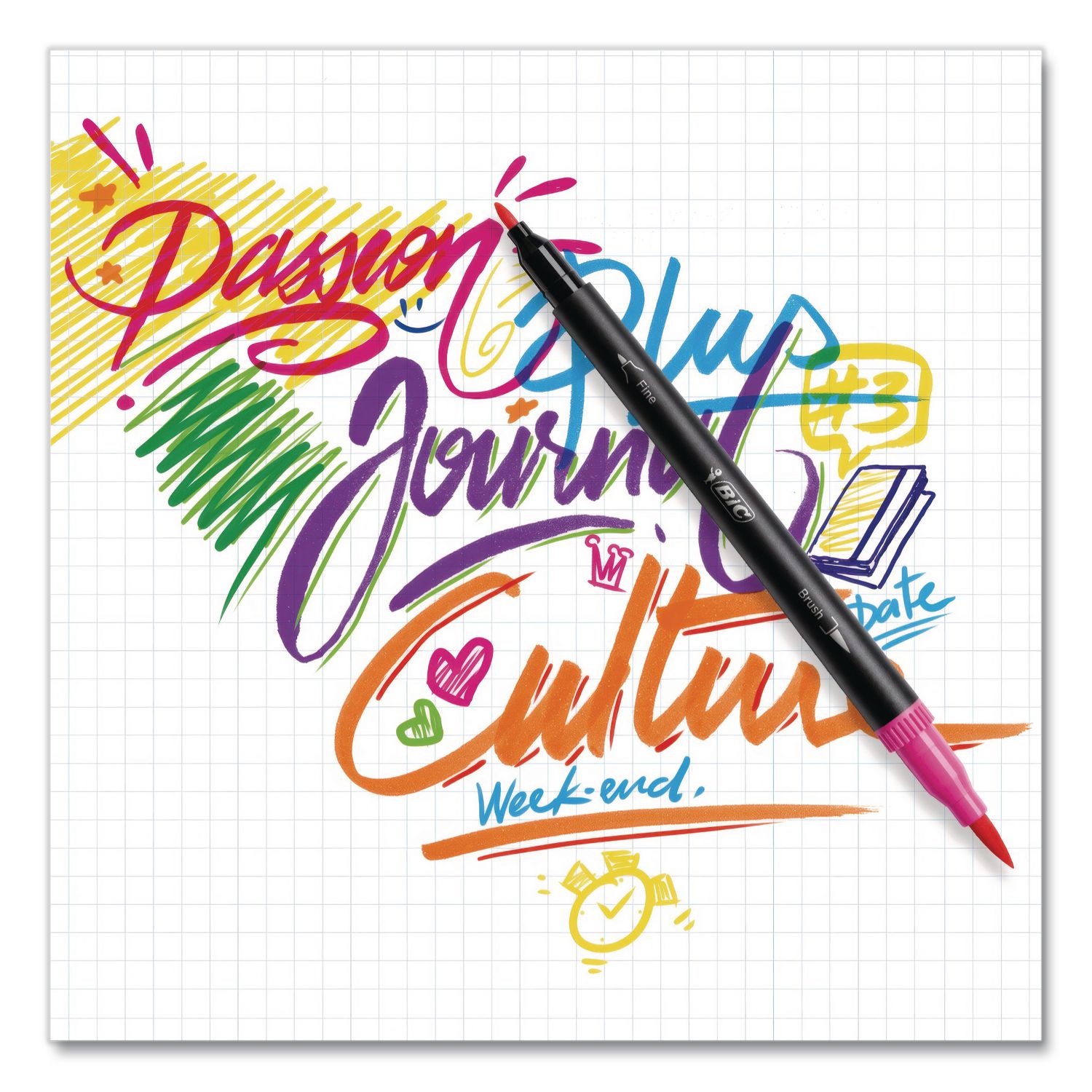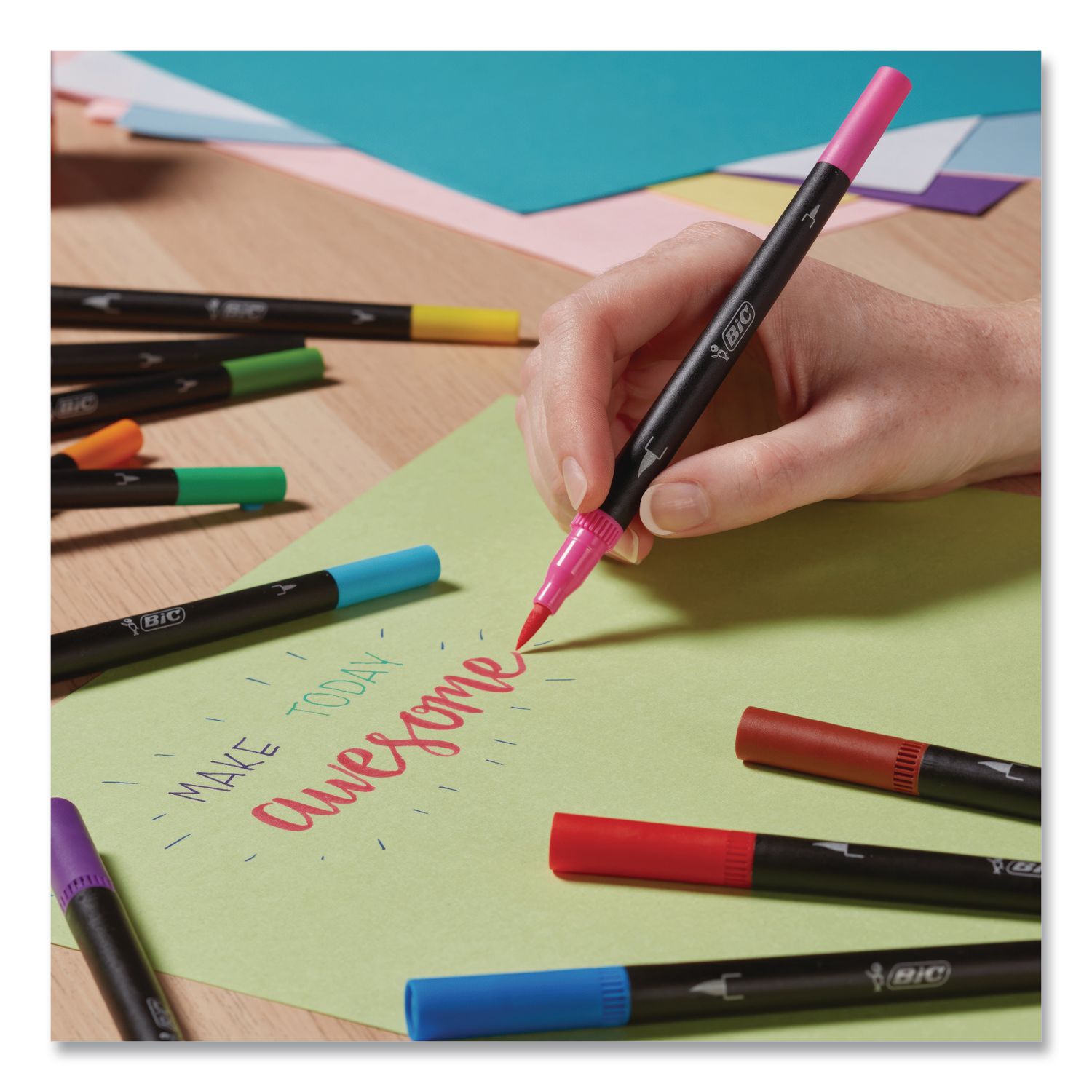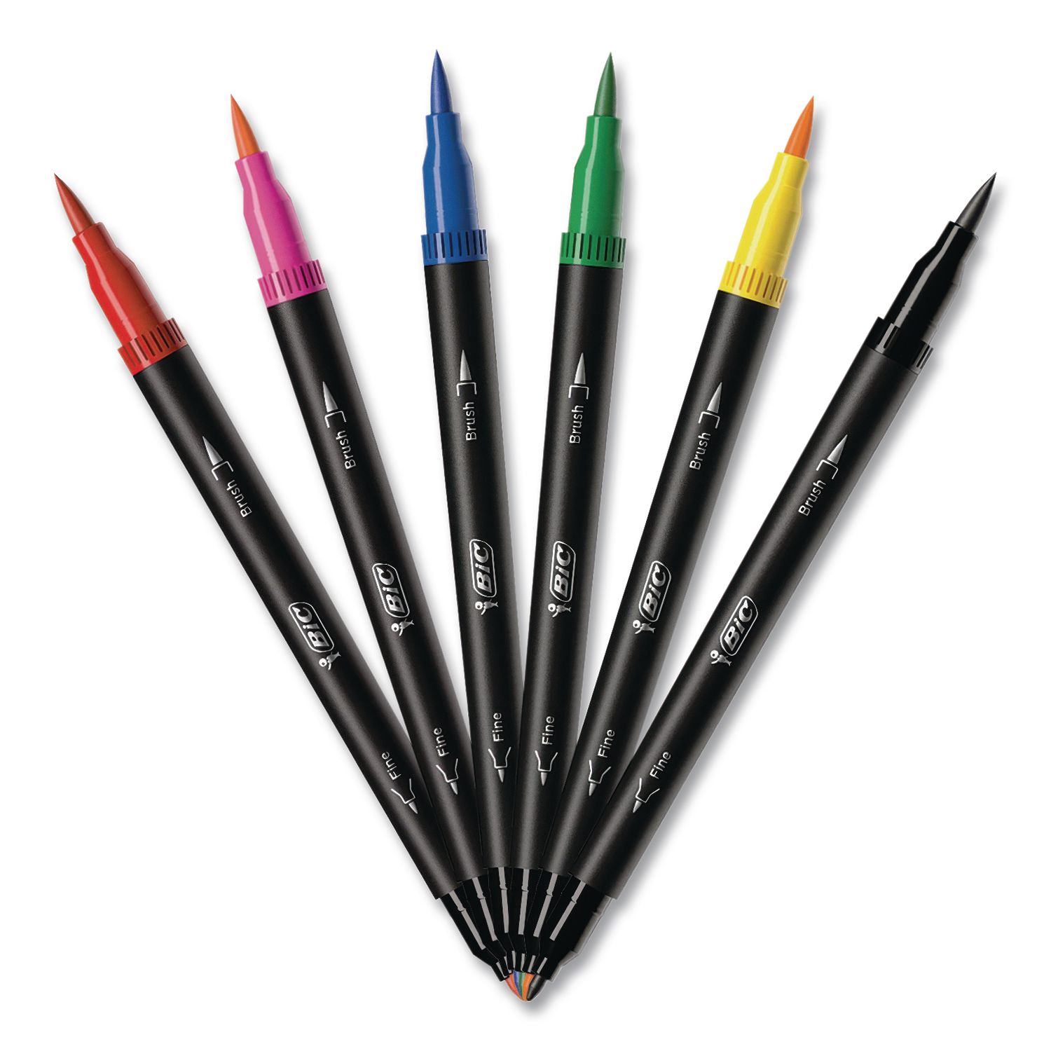 BIC® Intensity® Fineliner Dual Tip Felt Pens provide artists with exceptional versatility, making them ideal for professional fine art, brush lettering, illustrations, journaling and more! One end features a brush tip for broad, medium and fine strokes, while the other end features a fine bullet tip for consistent, high-precision marking. And to provide you with a safe, high-quality product that you can rely on, all Intensity® Fineliner marker pens utilize odor-free water-based ink, making them perfect for the classroom, the office and the home. Pen Sub-Brand & Product Family: Intensity® Fineliner Dual Tip; Pen Type: Porous Point Pen; Pen Style: Stick; Pen Tip Type: Brush/Bullet.