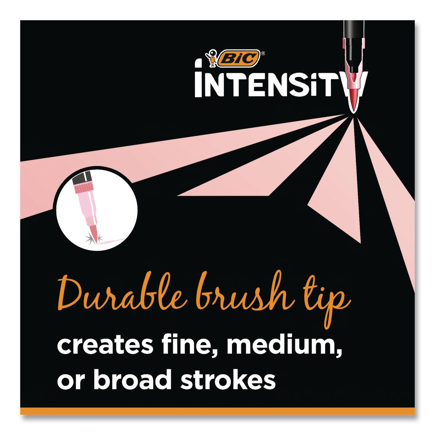 BIC® Intensity® Fineliner Dual Tip Felt Pens provide artists with exceptional versatility, making them ideal for professional fine art, brush lettering, illustrations, journaling and more! One end features a brush tip for broad, medium and fine strokes, while the other end features a fine bullet tip for consistent, high-precision marking. And to provide you with a safe, high-quality product that you can rely on, all Intensity® Fineliner marker pens utilize odor-free water-based ink, making them perfect for the classroom, the office and the home. Pen Sub-Brand & Product Family: Intensity® Fineliner Dual Tip; Pen Type: Porous Point Pen; Pen Style: Stick; Pen Tip Type: Brush/Bullet.
