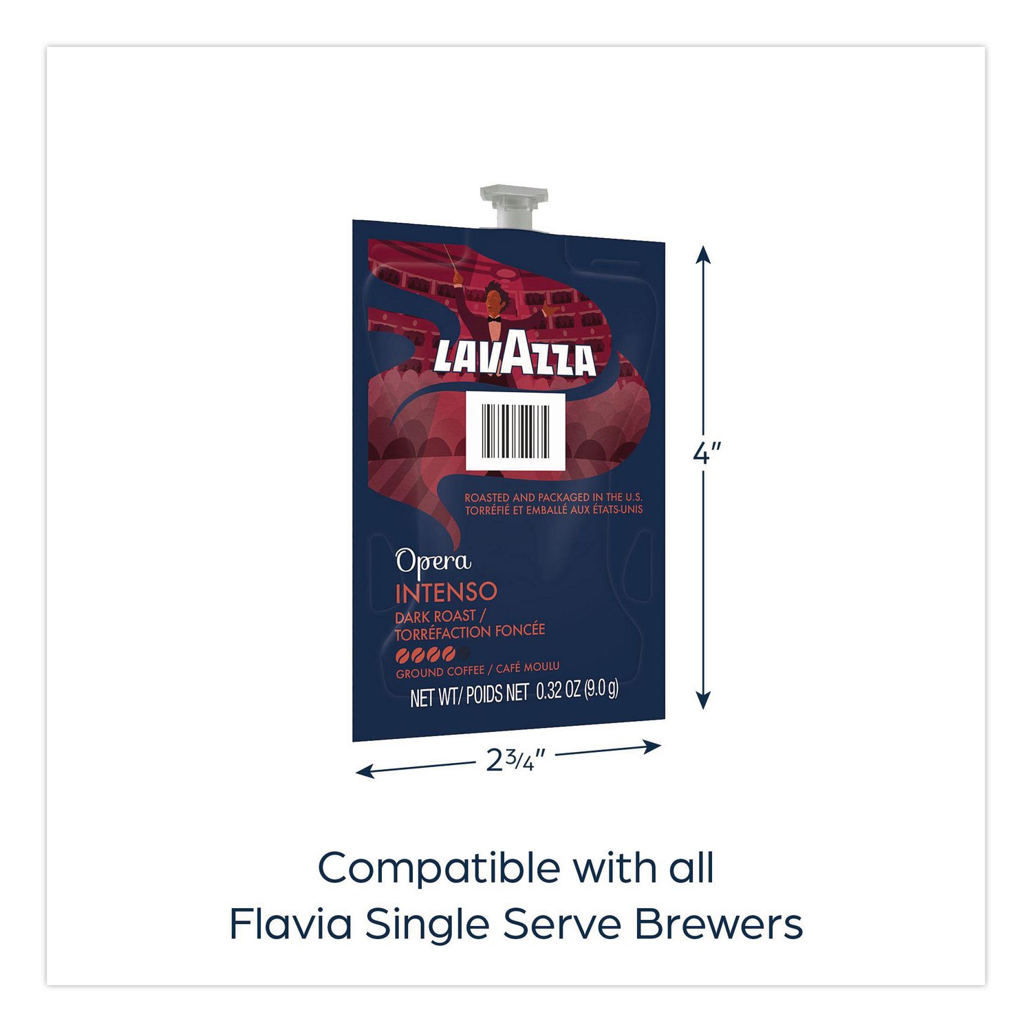 The Lavazza Intenso Dark Roast Coffee features a bold flavor with perfectly balanced smoky and caramelized flavor notes. Our dark roasting process enhances the body while finishing the taste experience with a hint of chocolate flavor notes. This traditional blend of Arabica and Robusta coffees, mainly from South-East Asia and South America, delivers a uniquely Italian coffee aroma. Our brewing process, where nothing touches the ingredients other than hot water, ensures your drink does not taste like previous brews. Compatible with FLAVIA® single-serve brewers. For single-serve sustainability, innovative pouches are 100 percent recyclable through Terracycle. Beverage Type: Coffee; Flavor: Intenso; Roast Type: Dark Roast; Product Packaging: Pouch.