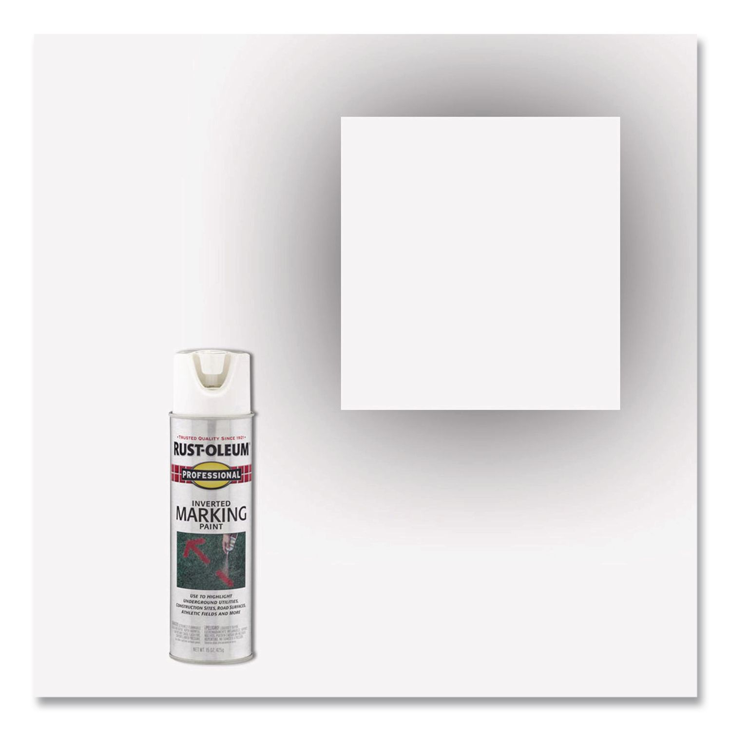 Rust-Oleum® Inverted Marking Spray Paint is great for use on athletic fields, landscaping jobs and more. It dries to the touch in just 15 minutes, and the 15 oz can provides coverage for areas up to 20 sq. ft. The can also includes a spray-through cap for painting upside down. Paint Sub-Category: Spray Paint; Intended Application Environment: Interior/Exterior; Finish/Sheen: Flat; Color(s): White.