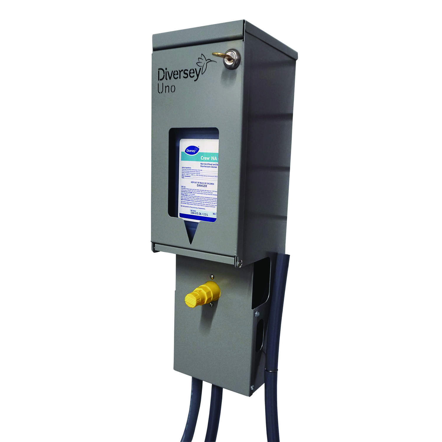 Compact single station dispensing unit. Lockable, wall-mounted unit. Accurately dispenses one J-Fill product and rinse water into spray bottles or buckets/autoscrubbers with a push of a button. Rugged stainless construction for long product life. Space saving design. High-Flow Fill Rate—Spray Bottle: 2 gpm, Bucket: 4 gpm. Soap Dispensers Type: For Liquids; Interior Volume Capacity: 2.5 L; Mounting: Wall; Material(s): Stainless Steel.