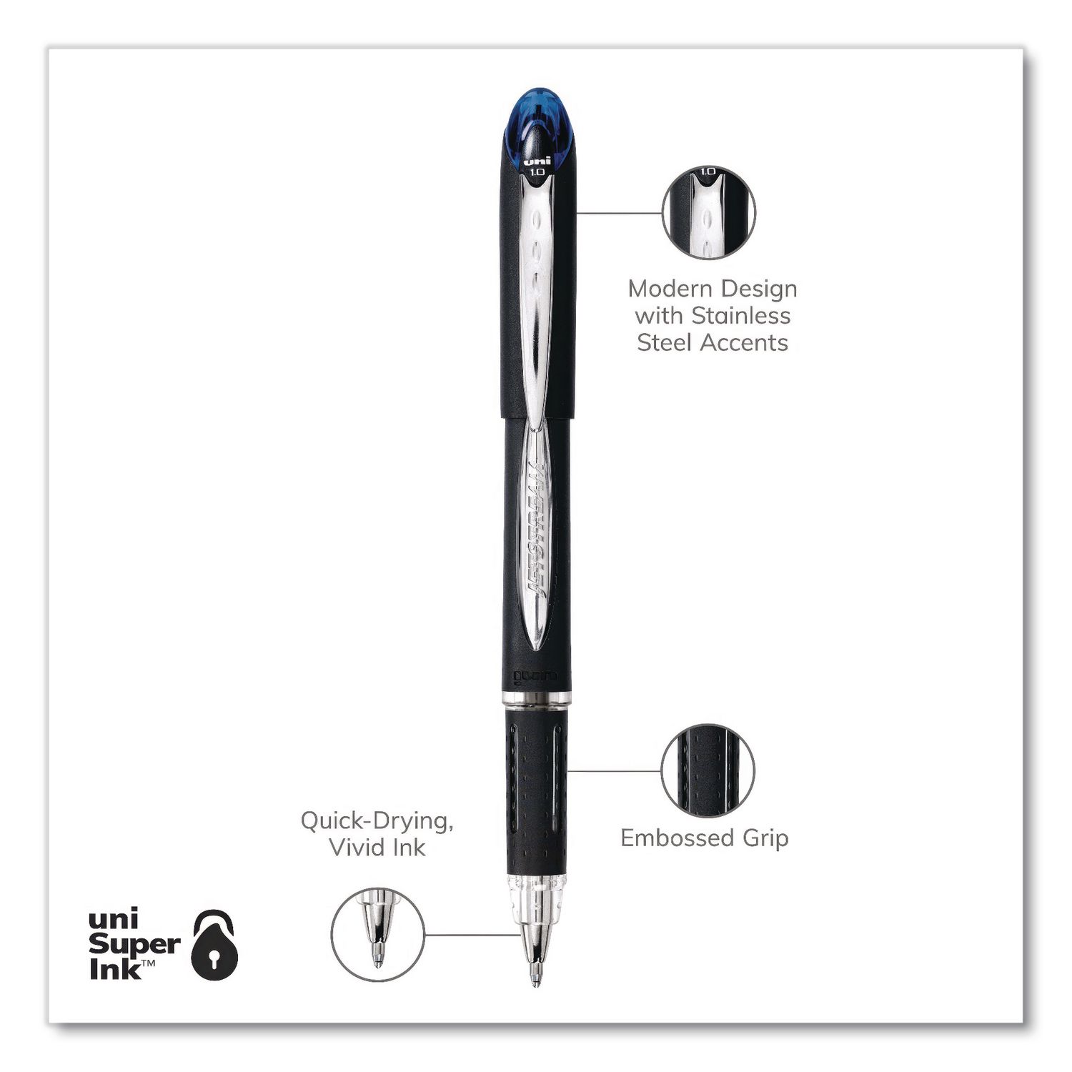 Write with greater speed and efficiency with Jetstream™ hybrid pens. Combining the silky-smooth performance and vivid vibrancy of a gel with the fast-drying efficiency of a ballpoint, Jetstream™ Form-Fitting Comfort Grip Hybrid Pens offer the best of both worlds to deliver an incredibly fast, clean writing experience. uni Super Ink technology ensures their ink settles deep to form an ever-lasting bond with paper that both enhances the ink’s intensity while providing three-way protection against water, fading and fraud. An embossed, form-fitting grip offers enhanced comfort and control, and a modern design with stainless-steel accents offers a stylish yet timeless appeal. Pen Sub-Brand & Product Family: Jetstream™ Form-Fitting Comfort Grip; Pen Type: Hybrid Gel Pen; Pen Style: Stick; Pen Tip Type: Conical.
