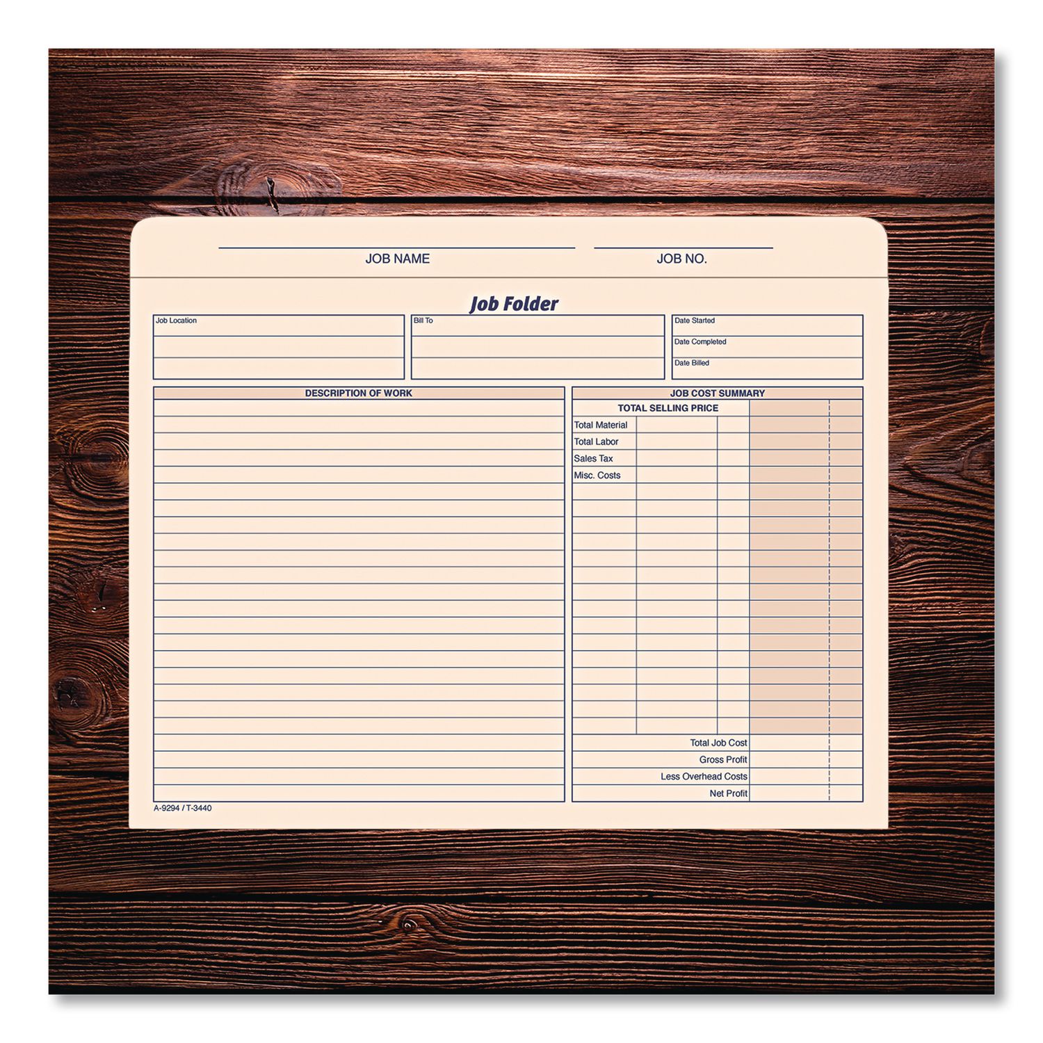 Stores all of the records of a contractor, serviceman or professional for a particular job. Record job description and costs on front, collect records and receipts inside. Jacket-style folder with full cut index tab. Printed red and blue on front. 9 pt. Manila. File Folder Size Type: Letter; File Folder Color: Manila; Color Family: Manila; File Folder Material: 9-pt Manila.