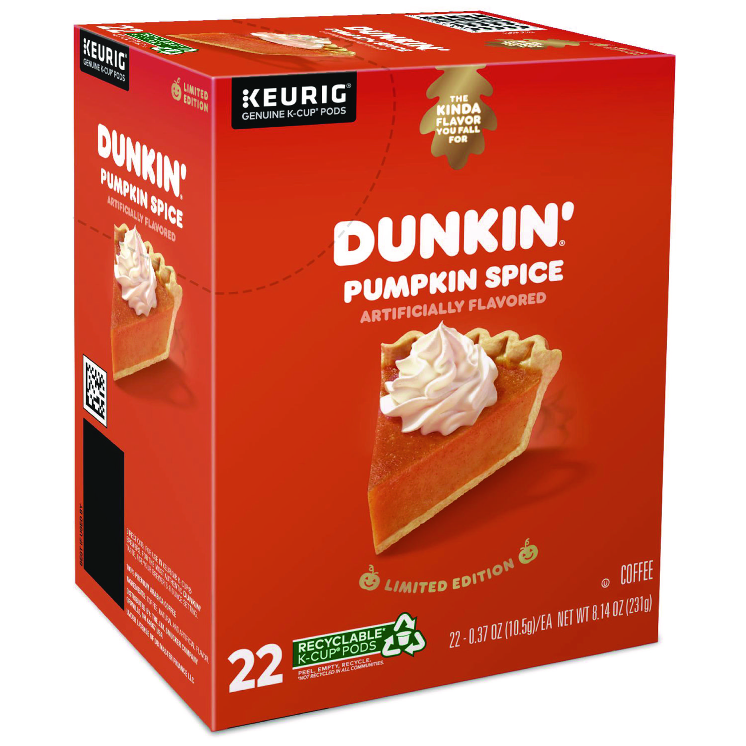 The rich, smooth delicious coffee served in Dunkin Donuts® restaurants is now available for your office in convenient Keurig® K-Cup® pods. Treat your employees to the great taste of Dunkin Donuts® coffee. Beverage Type: Coffee; Flavor: Pumpkin Spice; Roast Type: Medium; Product Packaging: K-Cup®.