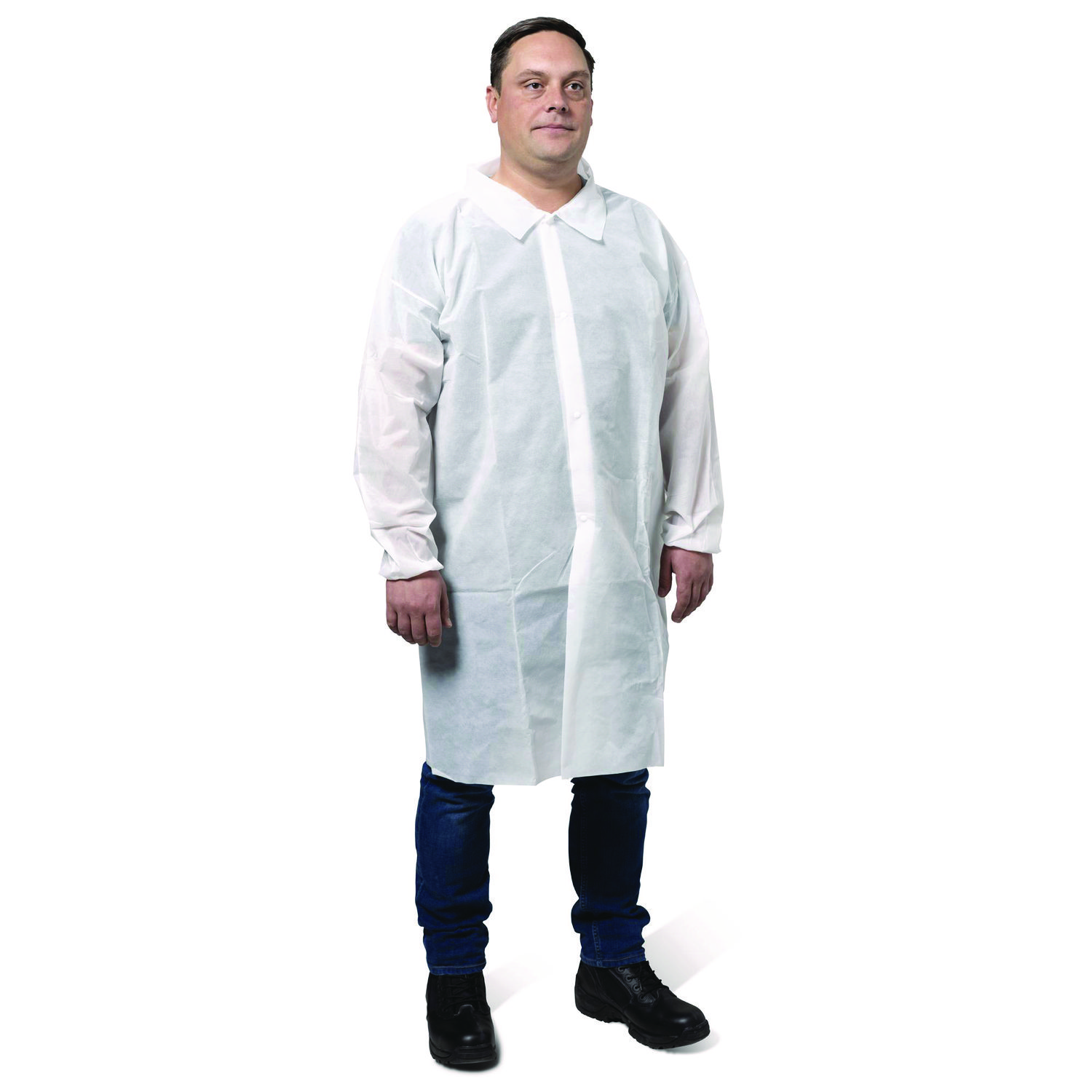 KleenGuard™ Personal Protective Equipment (PPE) enables rather than inhibits providing for safety and productivity for you and your employees. Affordably priced with a highly breathable spunbond fabric that allows moisture to escape, KGA10 apparel is a cost-efficient, comfortable choice. KleenGuard™ KGA10 Lab Coats are CE Category I PPE. KGA10 garments that feature stitched seams and are not made with natural rubber latex and not made with silicone. Protect with distinction with KleenGuard™ Personal Protective Equipment (PPE). Apparel Type: Lab Coat; Material(s): Spunbond Fabric; Color(s): White; Color Family: White.