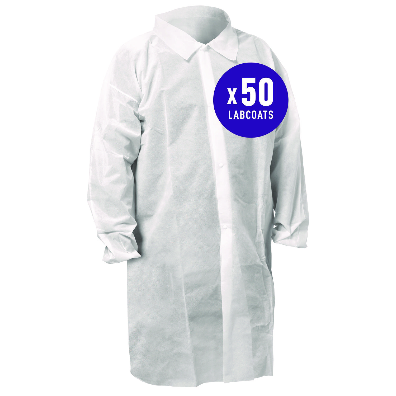 KGA10 Standard Weight Lab Coat for Non-Hazardous Particulate Protection, Large, White, 50/Carton
