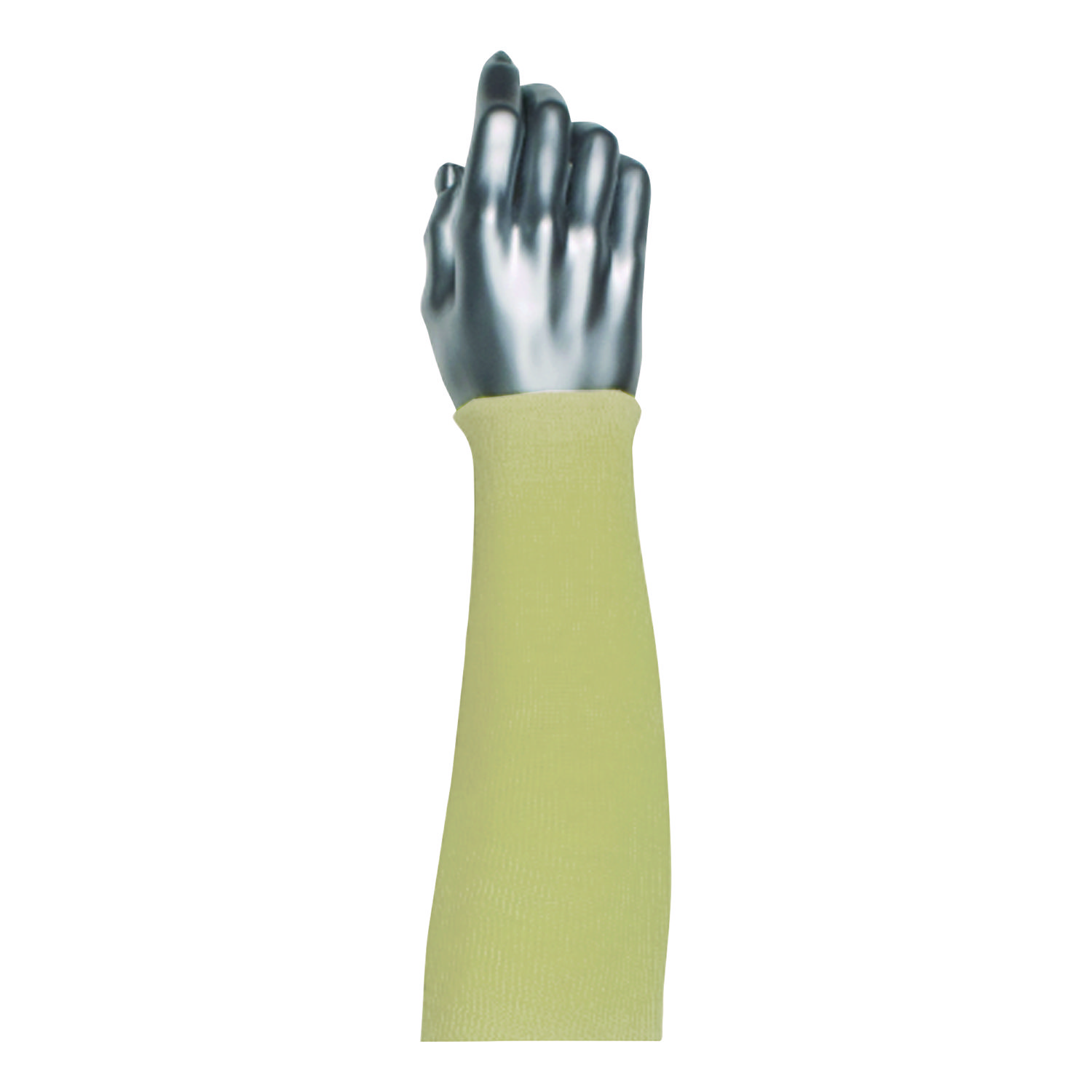 Offers arm cut protection for applications that require large object handling. Perfect for reach application protection. Seamless knit offers comfort and flexibility. Ideal for glass operations, sheet metal, automotive, food applications, electrical and light heat applications. Apparel Type: Protective Sleeve; Material(s): Kevlar®; Color(s): Tan; Color Family: Beige.