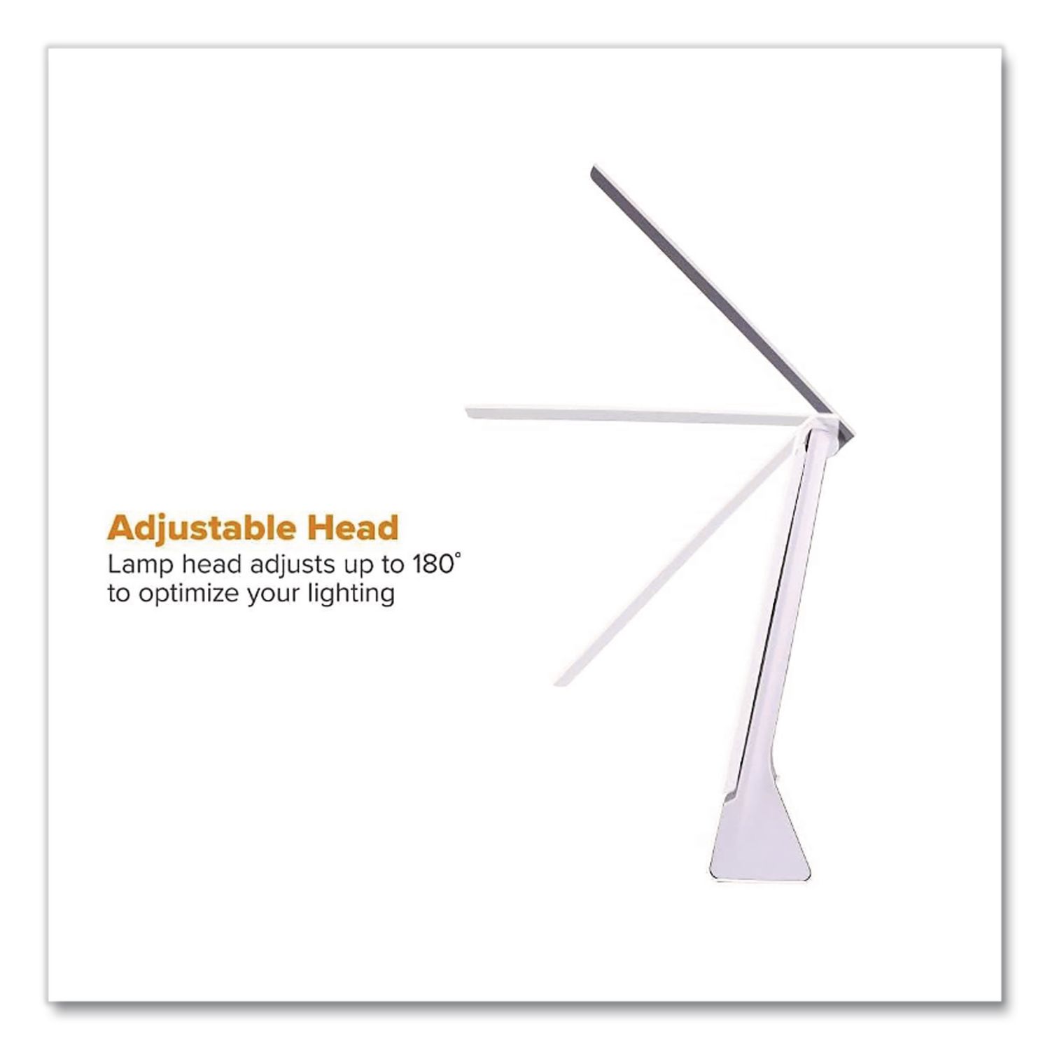 Color coordinated with our line of Konnect™ products, this Bostitch Office Konnect™ LED Desk Lamp is battery powered for wireless illumination anywhere you go. With a compact, modern design, the top neck flips open and folds down for easy use and portability. Three adjustable color temperatures are available to suit every mood and task. Read, relax or get work checked off your to-do list all with this lamp by your side. Plus, it only uses 4.5 watts of power. Base Color: White; Plug Type: USB; Height: 11.02″; Width: 2.52″.