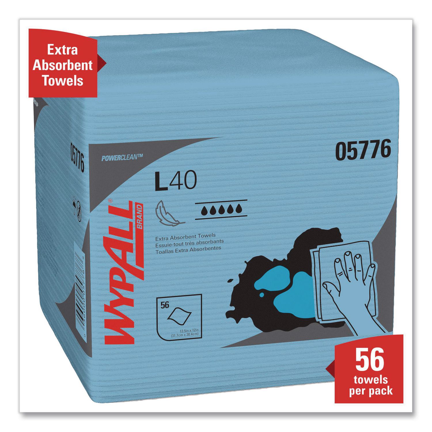 WypAll® is the number one brand of disposable wipes in the US and Canada. Maximize performance while minimizing time effort and product waste. If you’re looking for an effective wipe to absorb liquids lightning-fast, WypAll® PowerClean™ L40 extra absorbent towels are just what you need. These wipes are made of bonded cellulose using DRC (double re-creped) technology for strength, softness and absorbency. As a wiping towel, it soaks up liquids fast – but all you and your staff will feel is softness, thanks to a plush, touchable outer layer. These utility wipes are specially designed to absorb liquids, lubricants and oils (in restaurants for wiping counters, in mechanic shops, industrial and commercial factories and more), yet they’re soft enough for use on face and hands. Experience the difference in superior absorption and cleaning at your home or office today! Quarterfold-Ideal for benchtop use. Poly-packed. Towel/Wipe Type: Folded Wipers; Fold Types: Quarter-Fold; Applicable Material: Glass; Metal; Plastic; Stainless Steel; Wood; Material(s): Double Recrepe.