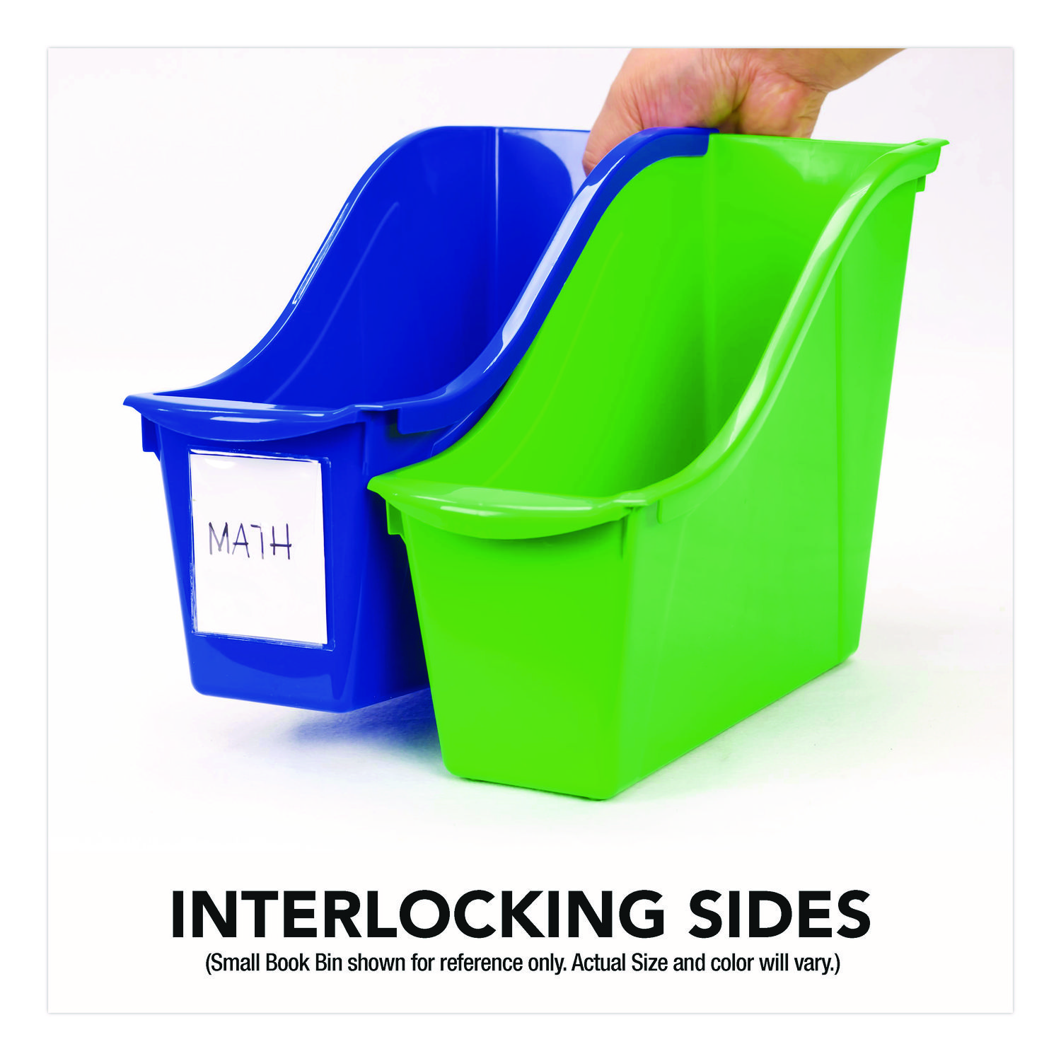 Keep your books organized and within easy reach. Link our book bins together to make a sturdy book storage or use the easy to grip handles to carry a set of books to your reading corner. The handles are perfectly sized for big and small hands. The interior depth is 12″ so it will fit taller books and letter sized file folders too. Label pouches not included. Number of Compartments: 1; Capacity (Volume): 2 gal; Maximum Volume Range: 1 to 5 gal; Capacity (Weight): 15 lb.