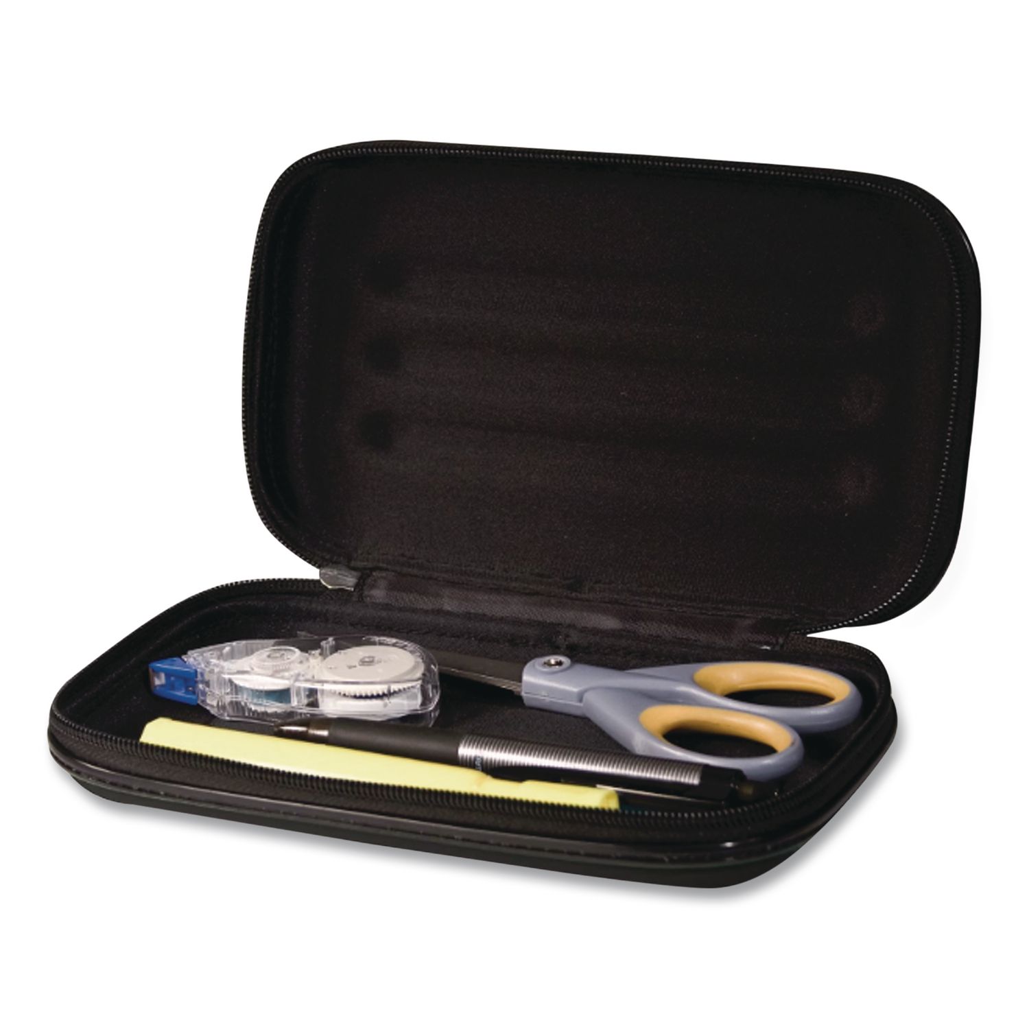 Great space-saver for storing pens, scissors, crayons and more. Secure, zipper closure keeps contents in place. Use in school, at home or in the office. Can hold up to 50 pens. Number of Compartments: 1; Color(s): Black; Color Family: Black; Material(s): Fabric; Metal.