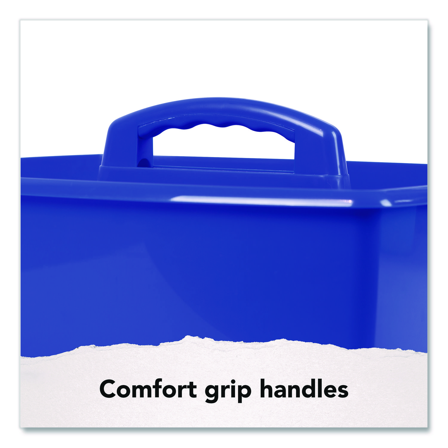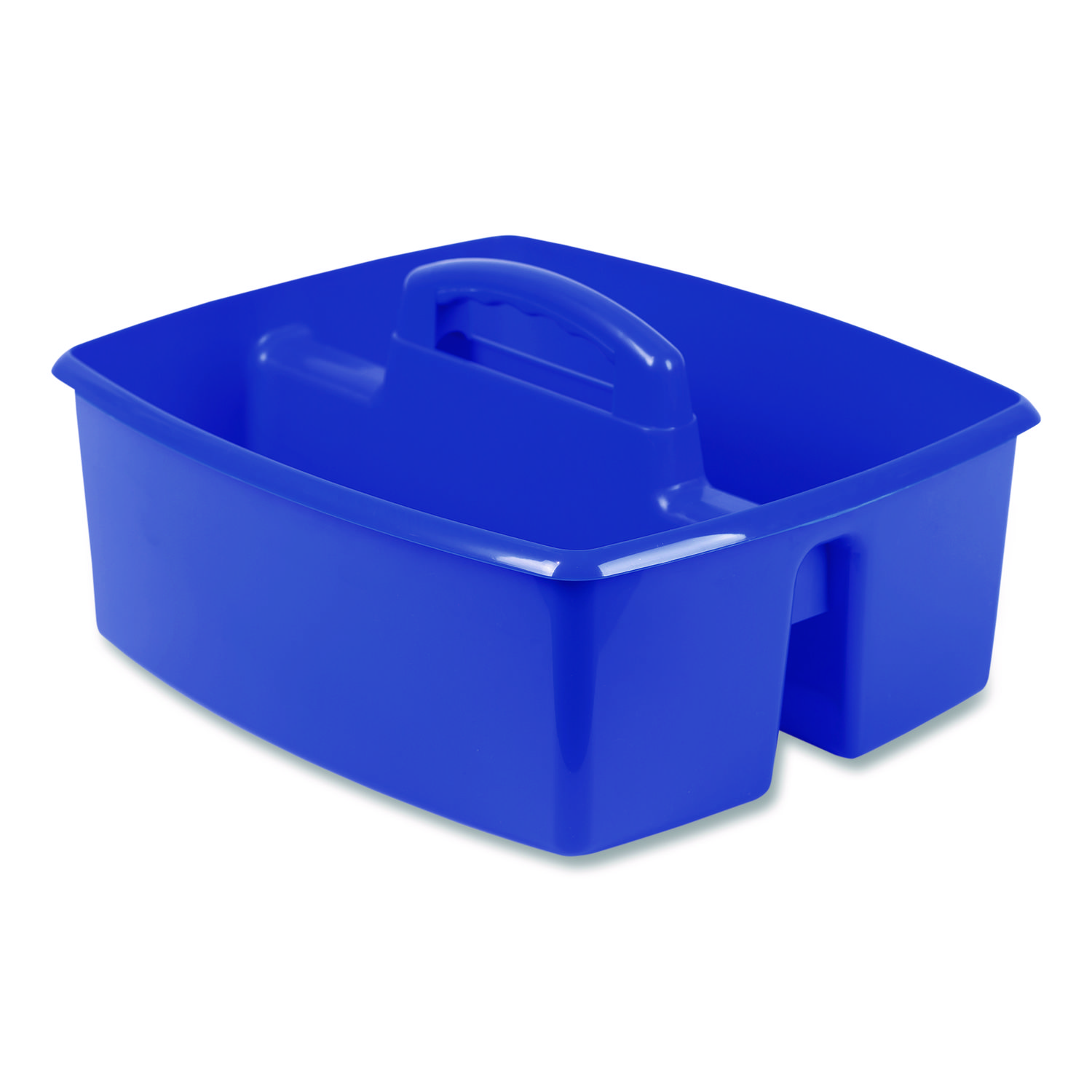 This large caddy has two large compartment to store art supplies, washing accessories or anything you need to keep handy. It has a comfort grip handle. Completely dishwasher safe. Bright Colors—Perfect for STEAM and/or STEM color-coding in the classroom. Art Containers Type: Caddy Carrier; Color(s): Assorted; Color Assortment: Blue; Green; Red; Teal; Violet; Yellow; Material(s): Plastic.