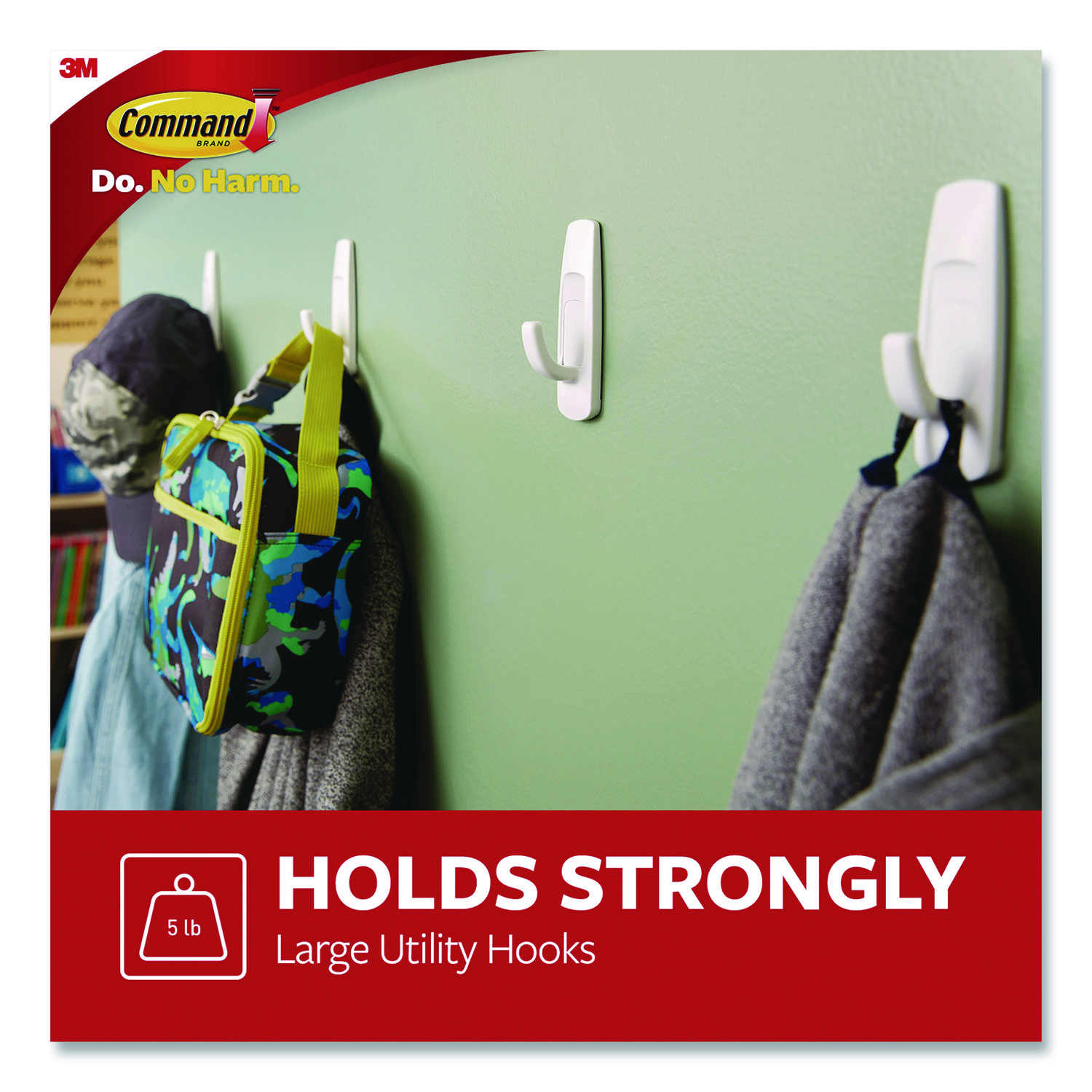 Command™ Damage-Free Hanging—holds strongly, removes cleanly. Forget about nails, screws and tacks, Command™ Hooks are quick and easy to hang, and they support a surprising amount of weight, too. Included adhesive strips stick to many surfaces: tile, wood, metal, painted surfaces and more, but they also remove cleanly, leaving no holes, marks, sticky residue or damage behind. Remove and reuse them again and again. Large Utility Hooks. Hanger/Hook Type: Hook; Width: 1.25″; Depth: 0.88″; Height: 3.88″.