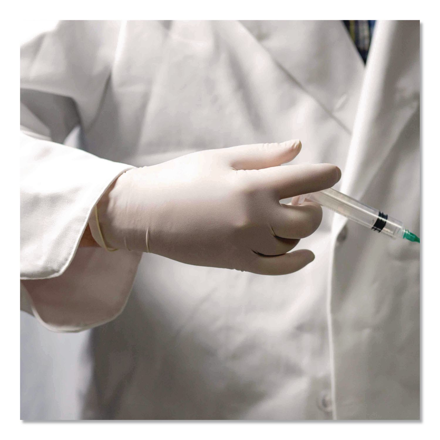 Latex Exam Gloves, Powder-Free, Small, 4 mil (Palm), 5 mil (Fingers), Ivory, 100/Box