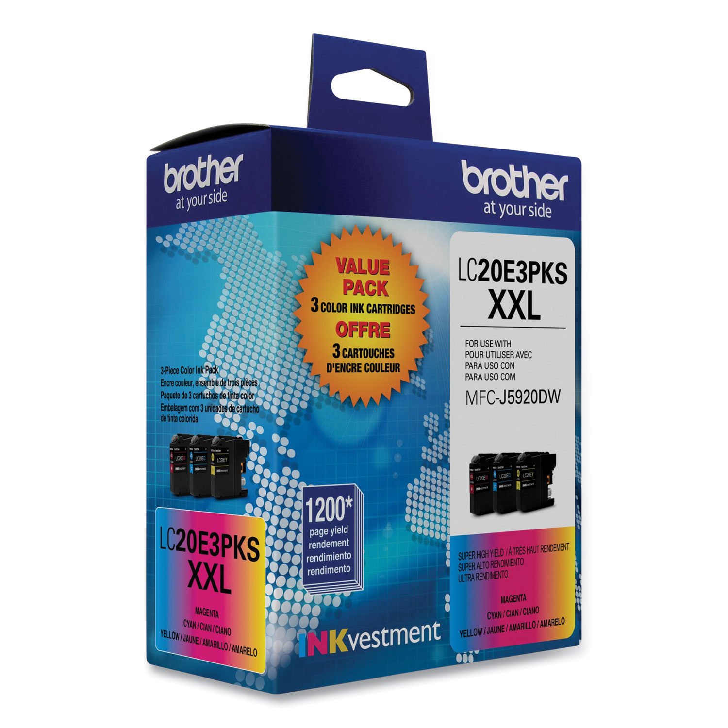 LC20E3PKS Super High-Yield Ink, 1,200 Page-Yield, Cyan/Magenta/Yellow, 3/Pack