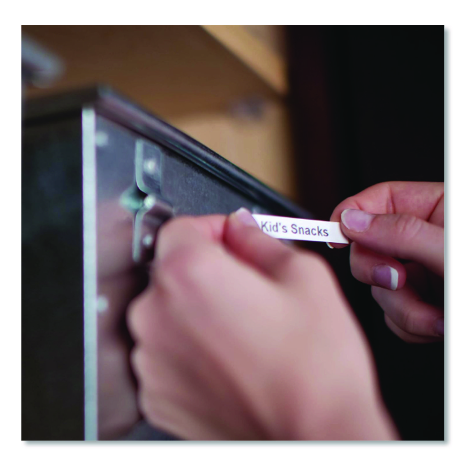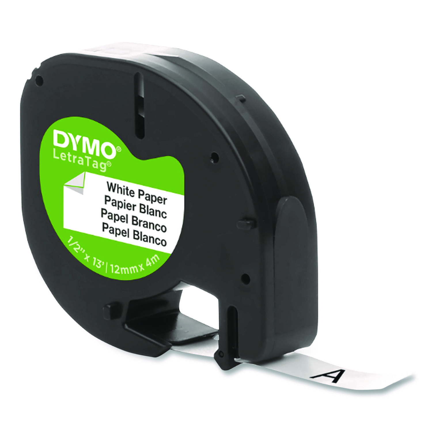 Created specifically for the LetraTag® label maker, DYMO LT labels are packaged in easy-to-load cassettes and feature an easy-peel backing for trouble-free application. Glossy Plastic—Wipeable, tear-resistant and easy to use. Label Size – text: 0.5″ x 13 ft; Label Color(s): White; Machine Compatibility: DYMO® LetraTag® Label Makers; Text/Label Colors: Black Print on White Tape.