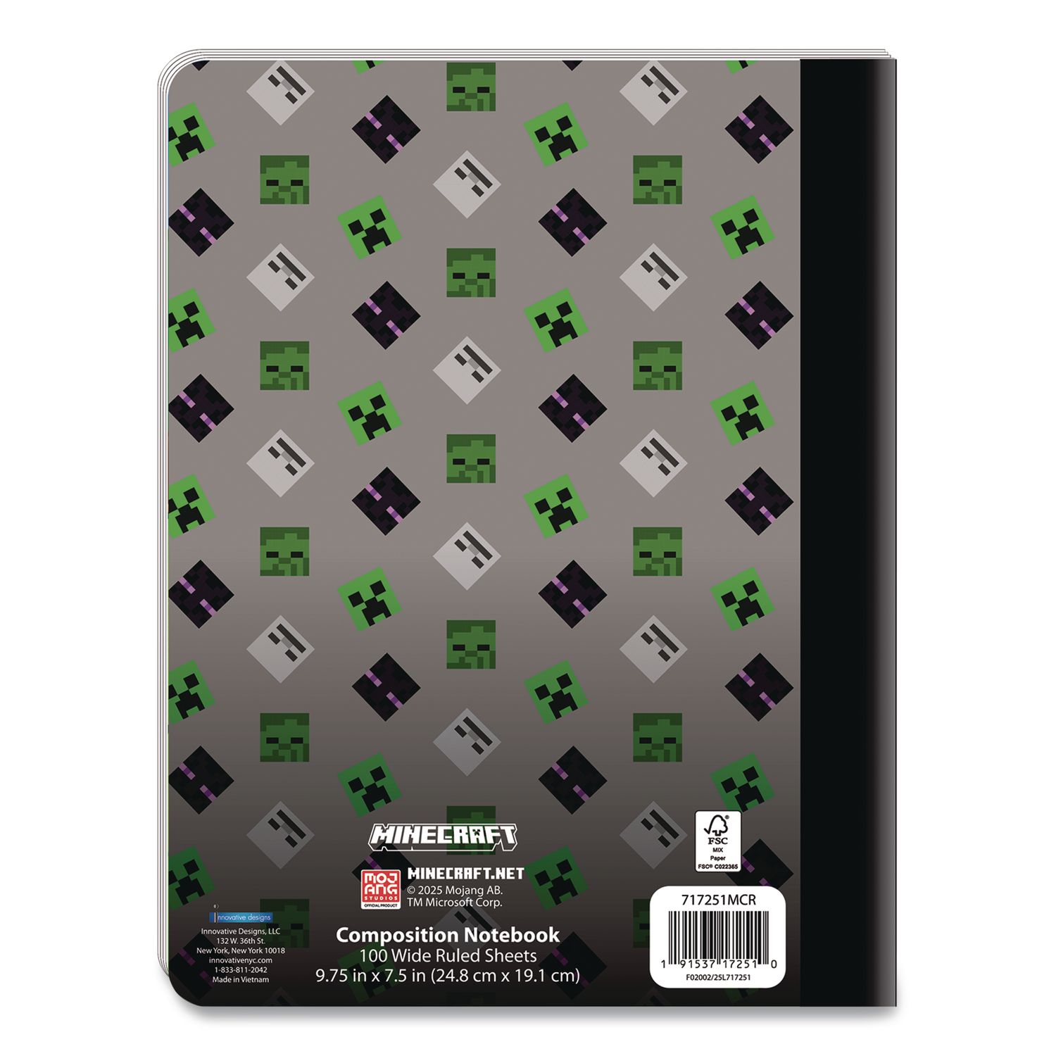 Bring your favorite characters to school with you. Each Licensed Composition Book from Innovative Designs features a colorful, action-packed cover depicting a range of characters taken from popular movies, cartoons, video games, comic books and more. Ideal for schoolwork, the covers are also laminated to keep up with busy students throughout the school year. Heavier weight, high-quality paper minimizes the potential for ink bleed through, and tape-reinforced sewn binding keeps the pages securely in place. Pocket Sized: No; Book-Binding Type: Sewn; Taped; Book-Binding Edge: Side; Cover Design/Theme: Minecraft.
